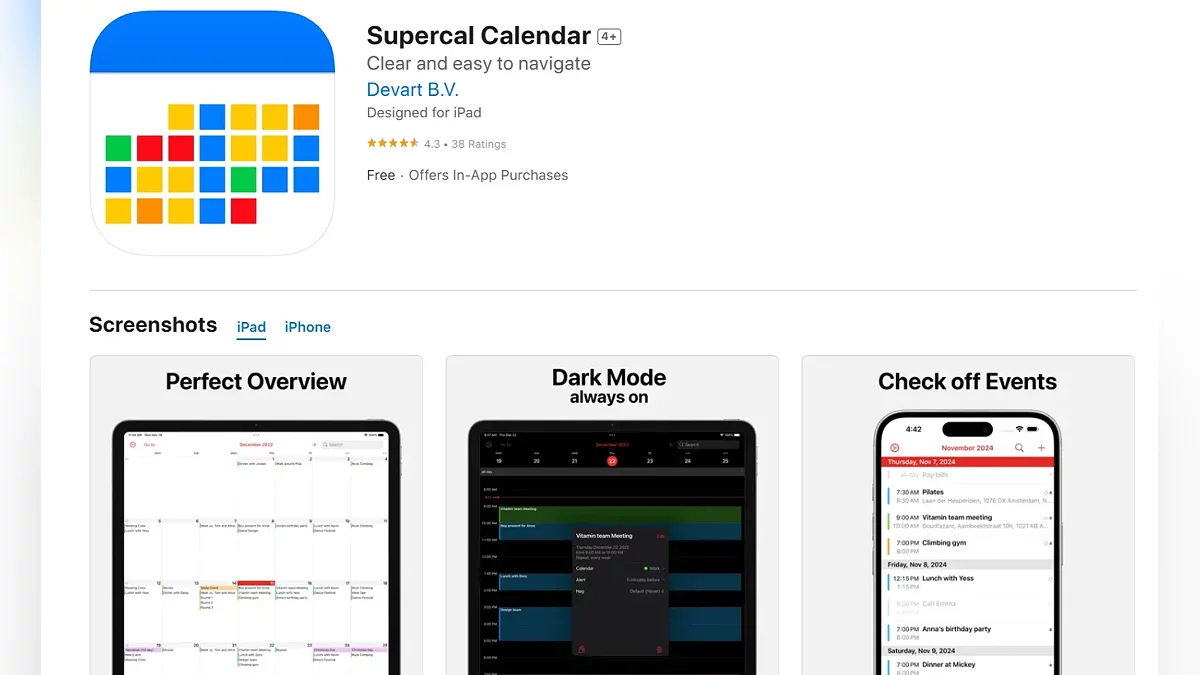 - Supercal Calendar — додаток «Календар», який відображає події в красивому інтерфейсі (завантажити безкоштовно);