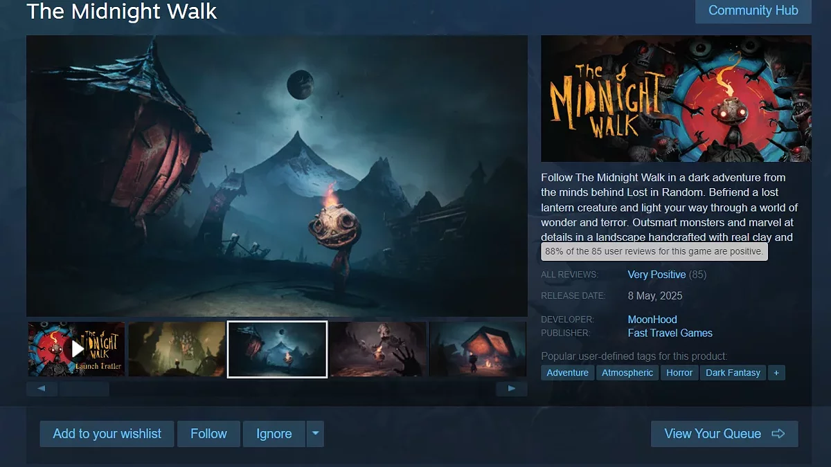 Купити The Midnight Walk в Steam можна за 1170 руб з урахуванням знижки 10% (діє до 15 травня). Також проект продається в PS Store. Примітно, що в грі є підтримка VR (грати в звичайному режимі теж можна).