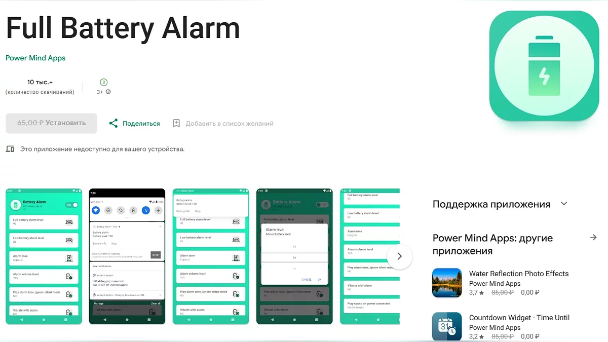 - Full Battery Alarm — програма, яка дозволяє встановити сповіщення для зарядки батареї (завантажити безкоштовно).