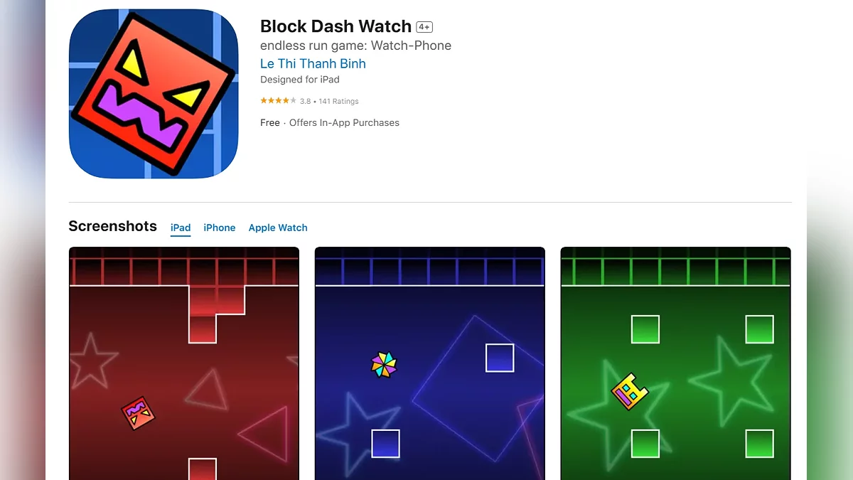 - Block Dash Watch — хардкорний платформер для Apple Watch, iPad та iPhone (завантажити безкоштовно).