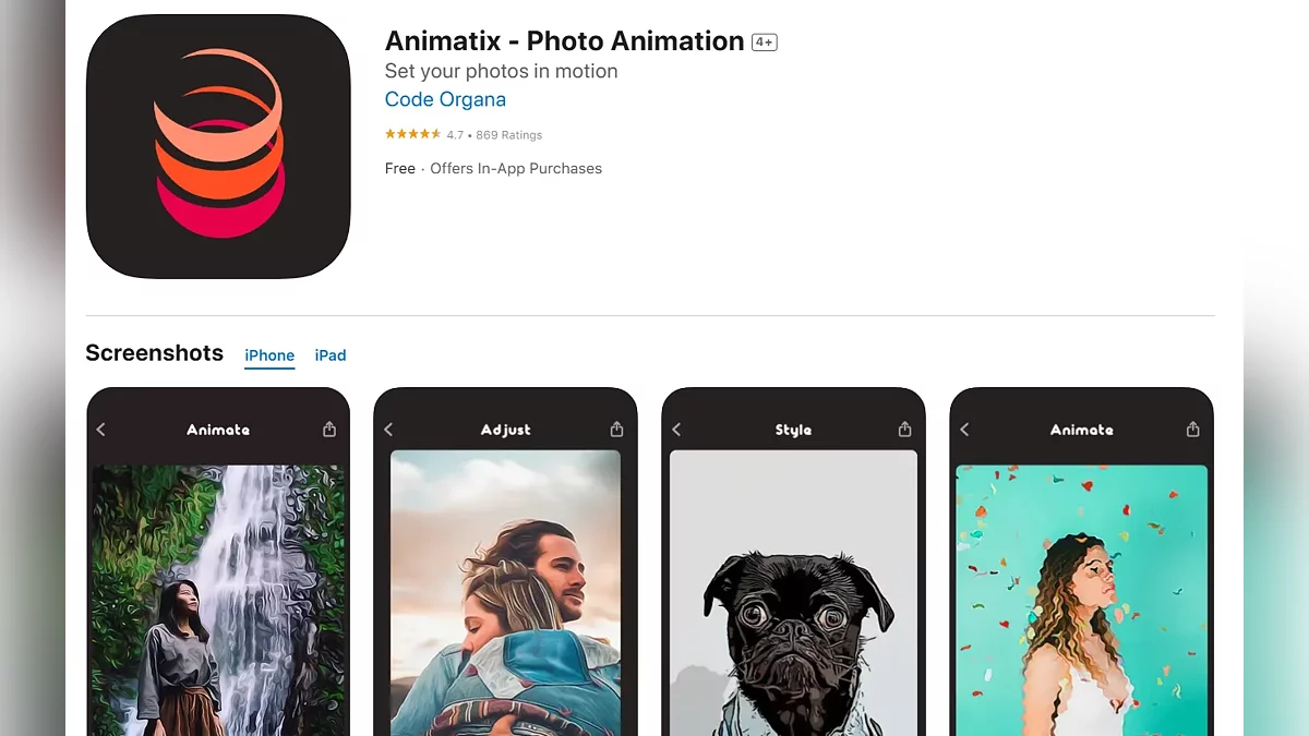 - Animatix — Photo Animation — програма, що перетворює фото в анімації (завантажити безкоштовно);