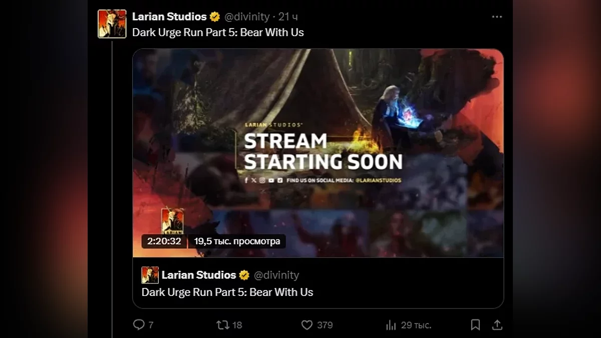 Студія змінила ім'я свого офіційного акаунту з @larianstudios на @divinity, чим заінтригувала деяких спостережливих підписників. Однак протрималося воно недовго — розробники випустили всього один пост під новим тегом, після чого повернули все як було. Деякі гравці запідозрили, що Larian Studios готується до анонсу проекту по Divinity, а зміна імені була лише перевіркою соцмереж.