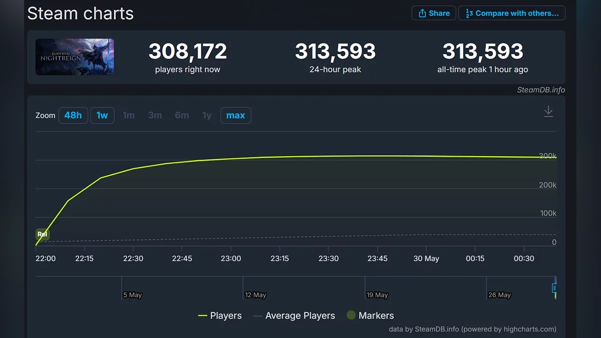 Примітно, що Elden Ring Nightreign вже потрапила в топ найпопулярніших ігор Steam за онлайном. В перші години після релізу в грі було зафіксовано 313 тис гравців.