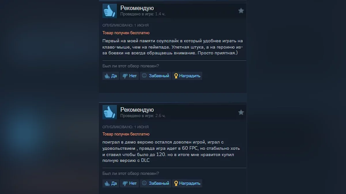 На момент написання новини рейтинг Stellar Blade склав 91%. Загалом гравці похвалили стан демонстраційної версії — у багатьох екшен йшов зі стабільними 60 FPS. Розробники з Shift Up зробили зручне керування під мишу та клавіатуру і грунтовно попрацювали над оптимізацією. У «мінуси» записали ті ж проблеми, що були і в версії для PS5 — розмиття графіки, діалоги та бойову систему, яку деякі гравці розкритикували ще в рік релізу.