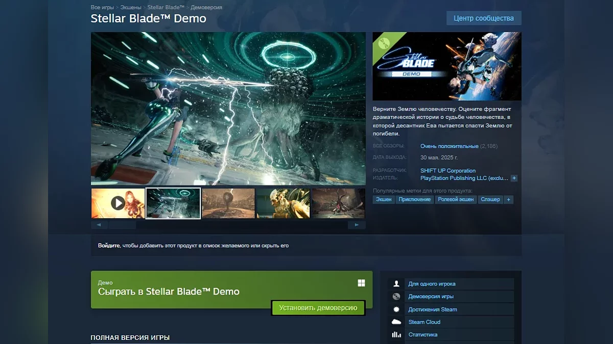 ![]() На PC вийшла демоверсія Stellar Blade На PC вийшла демоверсія Stellar Blade