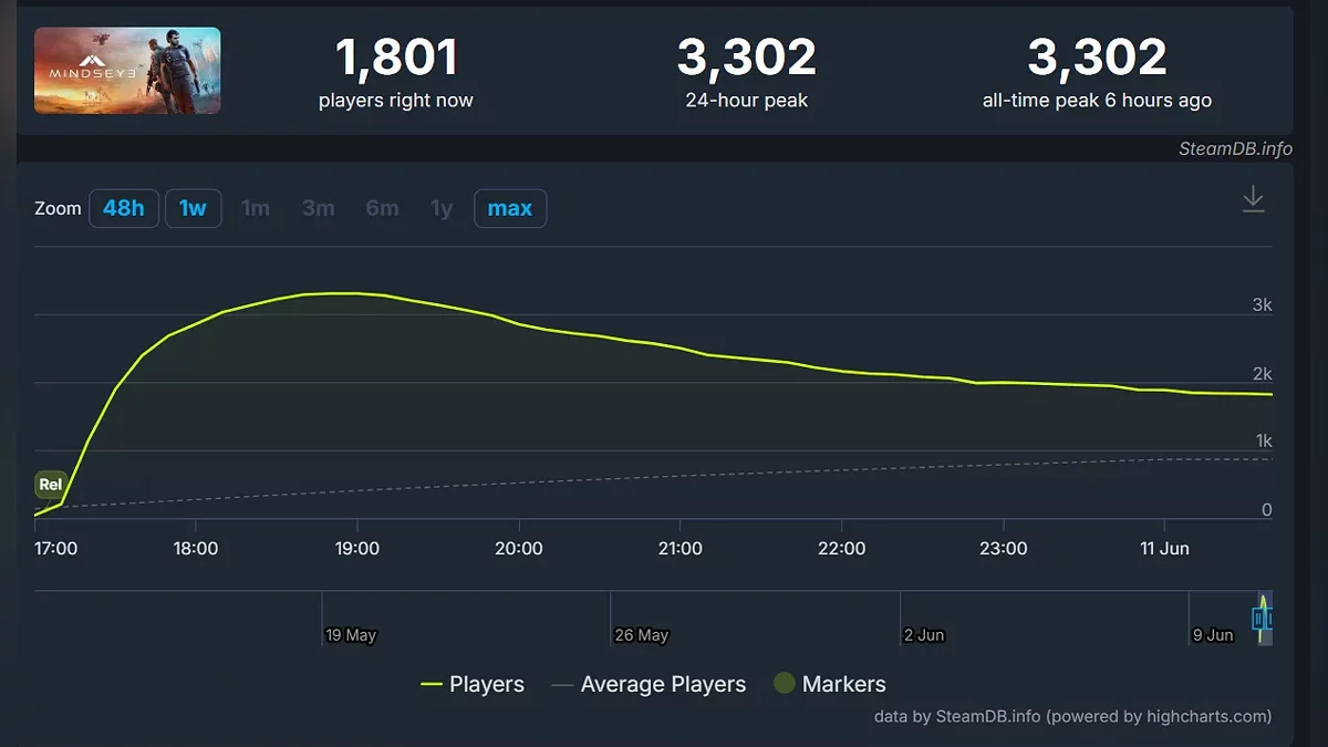 Що стосується онлайну, в перші години після релізу в MindsEye було зафіксовано 3,3 тис гравців.