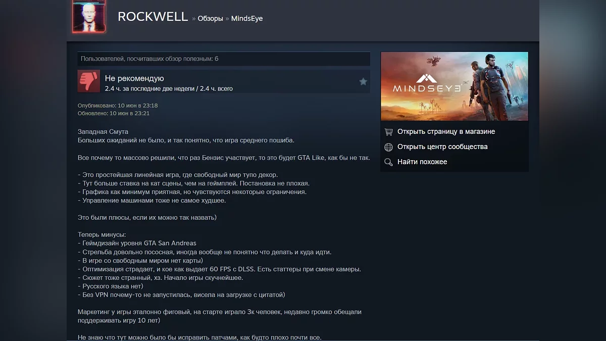 «Західна Смутa» і «Перший млинець — комом»: як геймери в Steam оцінили MindsEye від колишнього продюсера GTA 5