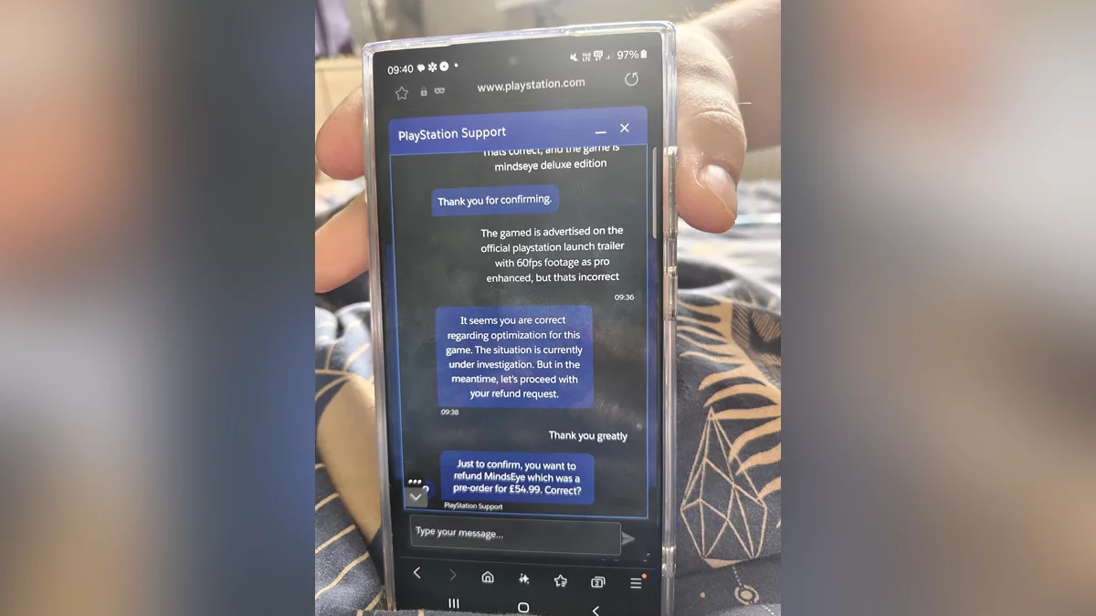 Гравці скаржаться на невідповідність заявленої якості (в тому числі через відсутність обіцяних 60 FPS) та технічні проблеми. PlayStation офіційно визнала наявність проблем і пішла назустріч незадоволеним гравцям, як це вже відбувалося у випадку з Cyberpunk 2077. Однак, на відміну від ситуації з Cyberpunk, MindsEye поки не була видалена з PS Store.