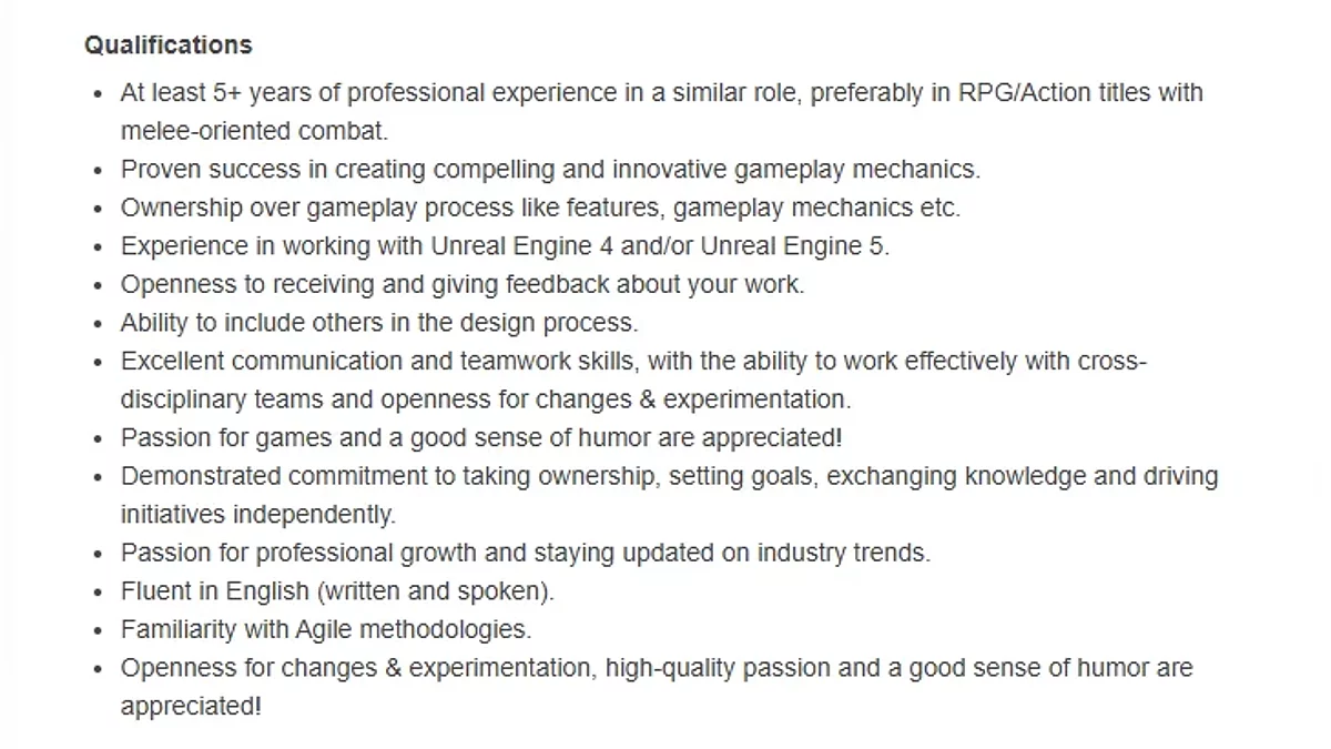 Як випливає з опису вакансії старшого геймдизайнера в CDPR, проект розробляється як екшен-RPG на движку Unreal Engine 5. На відміну від The Witcher і Cyberpunk, гра покладе початок власній франшизі студії. Також особливий акцент зроблено на системі ближнього бою, тож шутерні механіки однозначно відпадають.