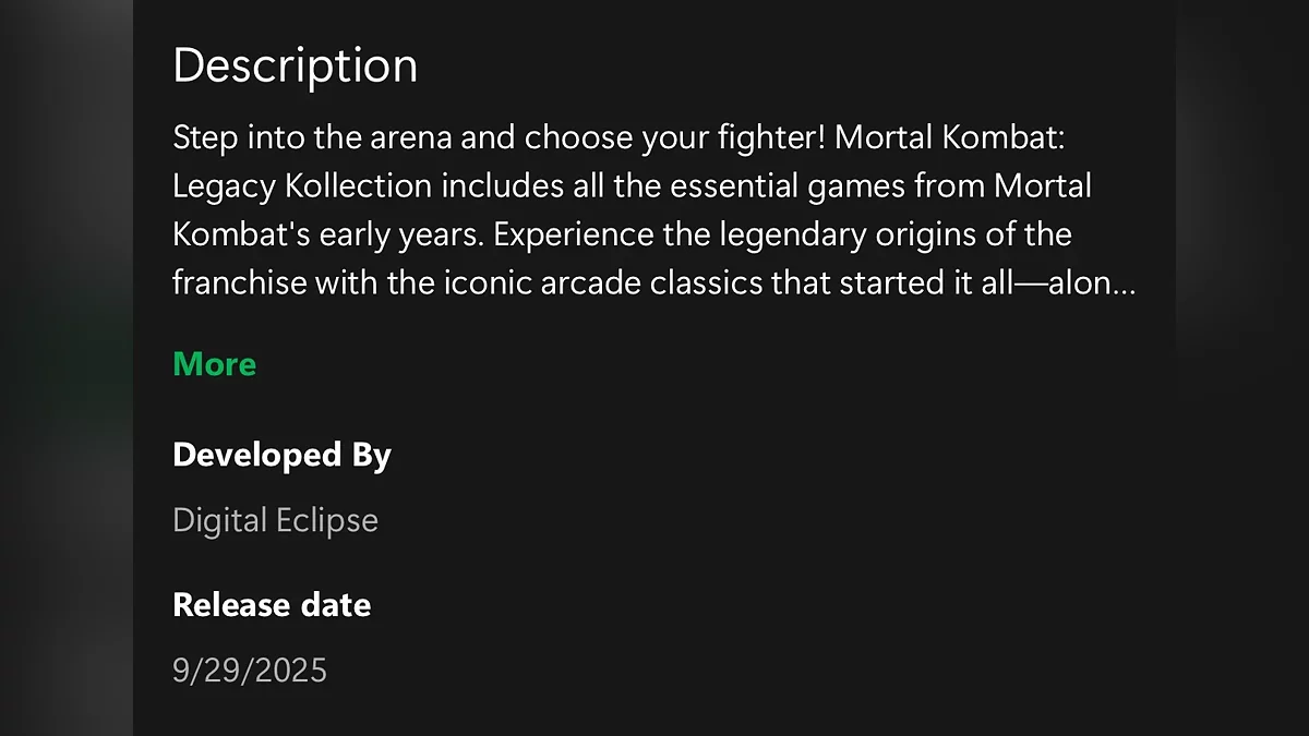 Користувачі Reddit звернули увагу, що додаток Xbox раніше терміну вказав дату релізу Mortal Kombat: Legacy Kollection. Якщо інформація вірна, то вихід збірника відбудеться 29 вересня.