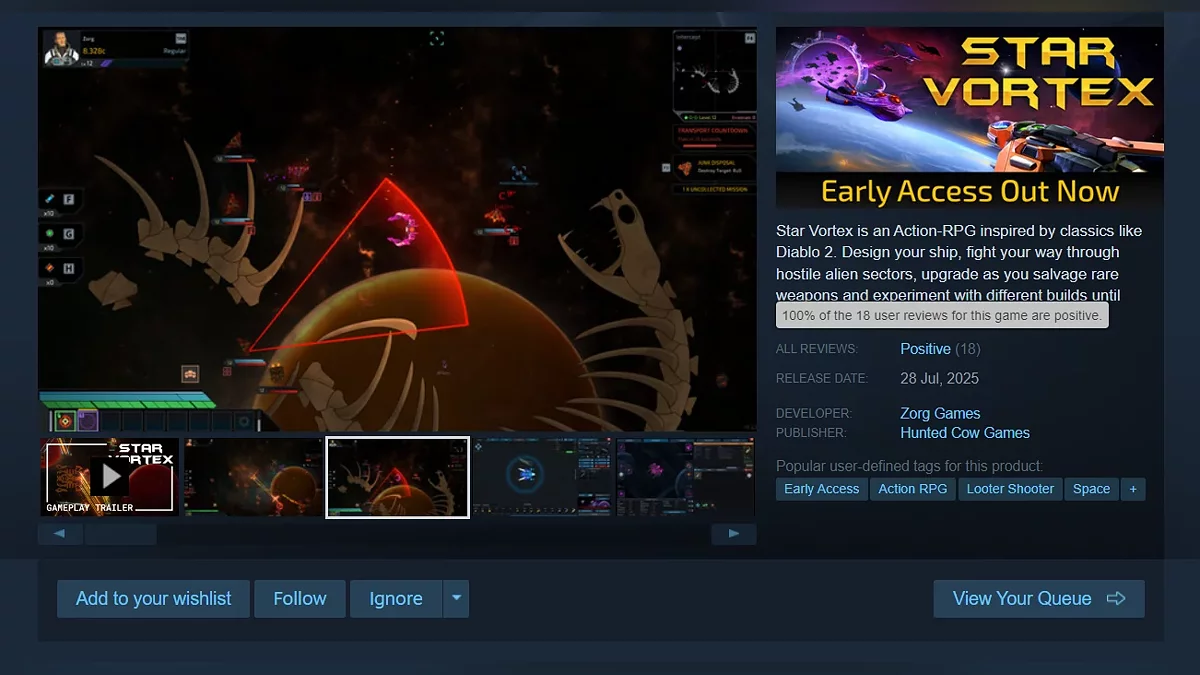 На PC в ранньому доступі вийшов RPG-екшен під назвою Star Vortex. Перші користувацькі оцінки виявилися позитивними. На момент написання новини рейтинг складає 100%.
