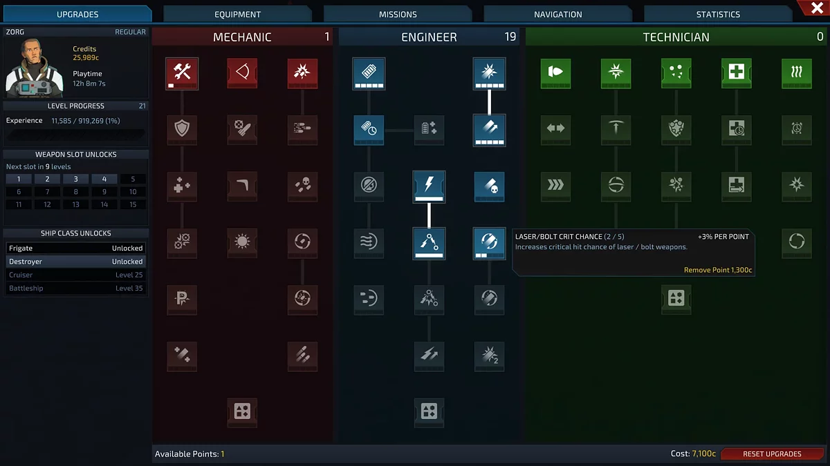 Під час проходження гравець розвиває свого пілота, поступово перетворюючи невеликий фрегат в величезний лінкор. Корабель можна налаштовувати вручну — кастомізувати його зовнішній вигляд, встановлювати зброю, обладнання і змінювати компоновку слотів. В арсеналі — лазери, ракети, турелі, дрони, граві-гармати, щити, поле невидимості і багато іншого, що дозволяє створювати унікальні білди з різними тактичними перевагами.
