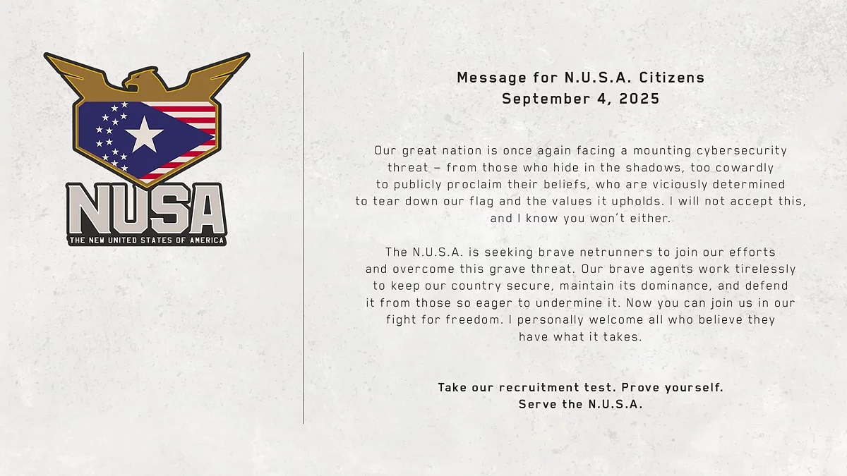 Пройдіть наш тест на рекрутування. Доведіть себе. Служіть N.U.S.A.