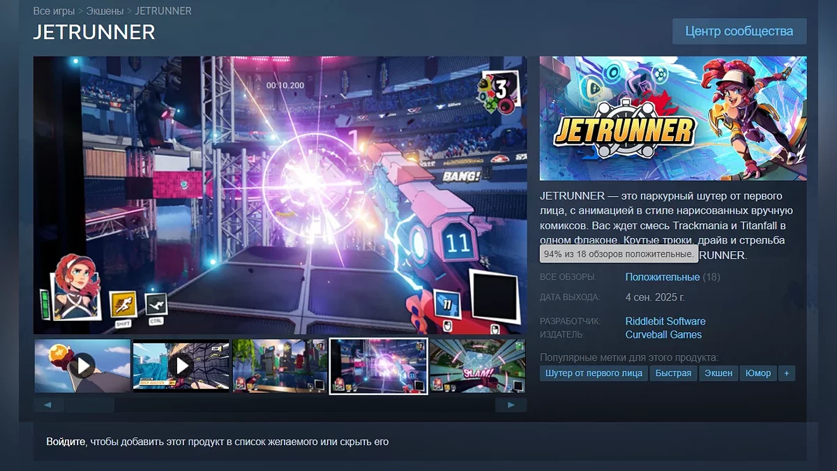 На PC (Steam та EGS) вийшов новий паркурний шутер від першої особи під назвою JETRUNNER, який, за словами розробників, є своєрідною «сумішшю Trackmania та Titanfall в одному флаконі».