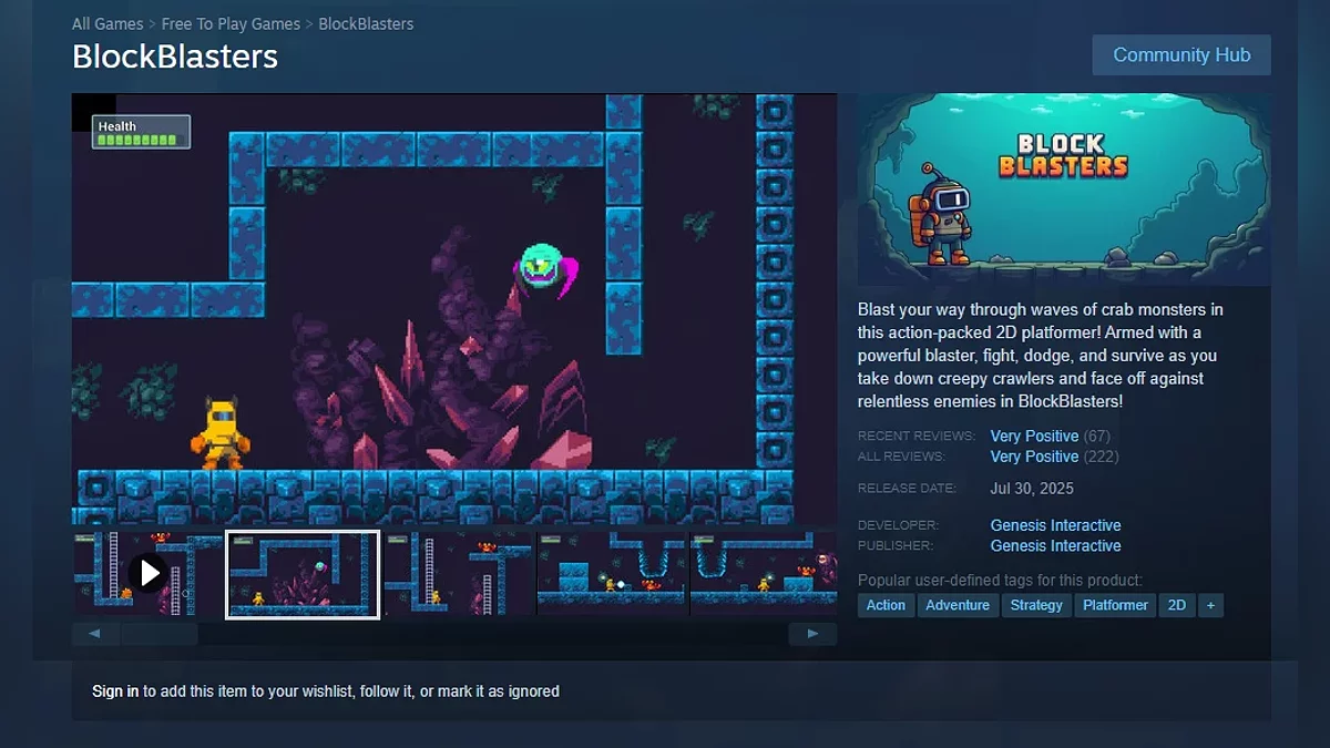 BlockBlasters від видавця Genesis Interactive з'явилася в добірці безкоштовних ігор Steam 30 липня як піксельний 2D-платформер з позитивними відгуками. Такою вона залишалася до оновлення 30 серпня, яке додало в гру шкідливий компонент CryptoDrainer.