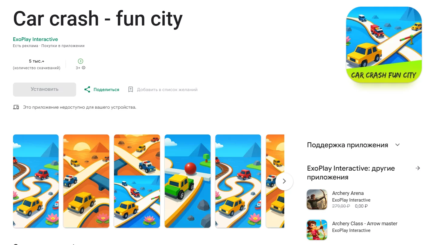 • Car crash — fun city — гіперказуальна гоночна гра, в якій потрібно об'їжджати перешкоди, уникаючи зіткнень та вибираючись з безкінечного затору (завантажити безкоштовно);