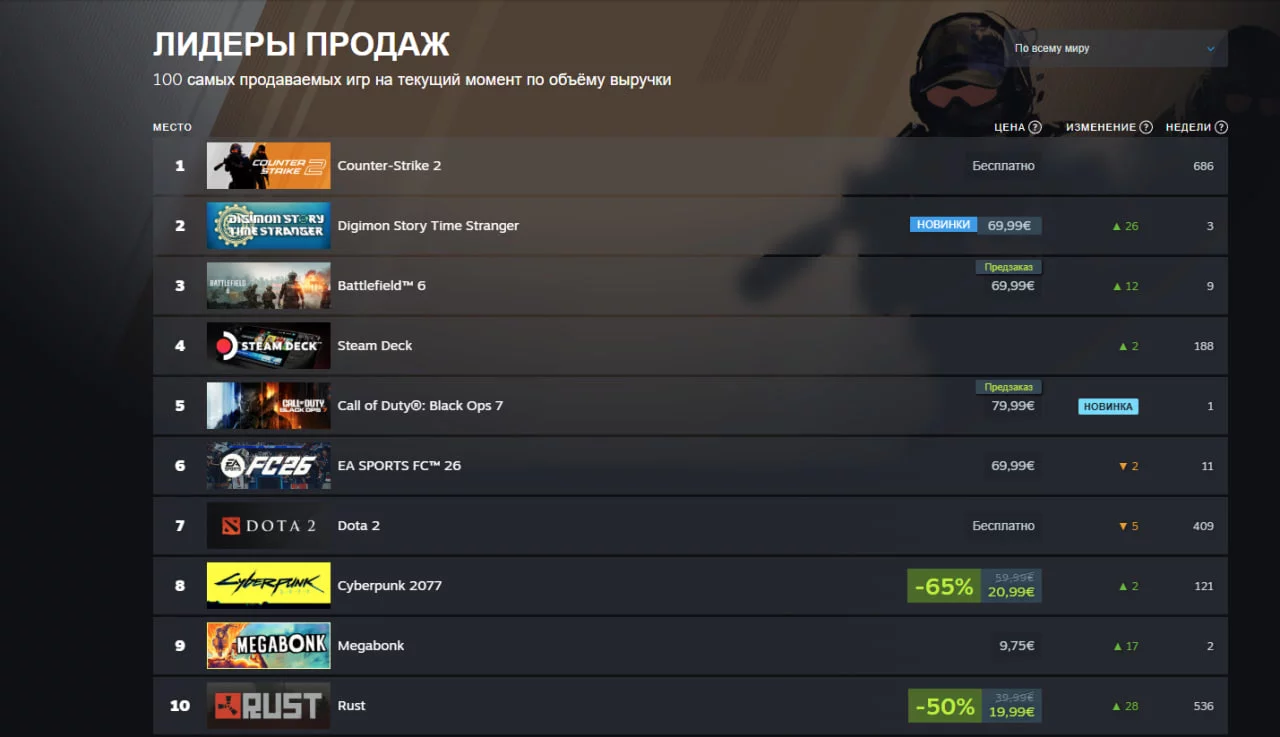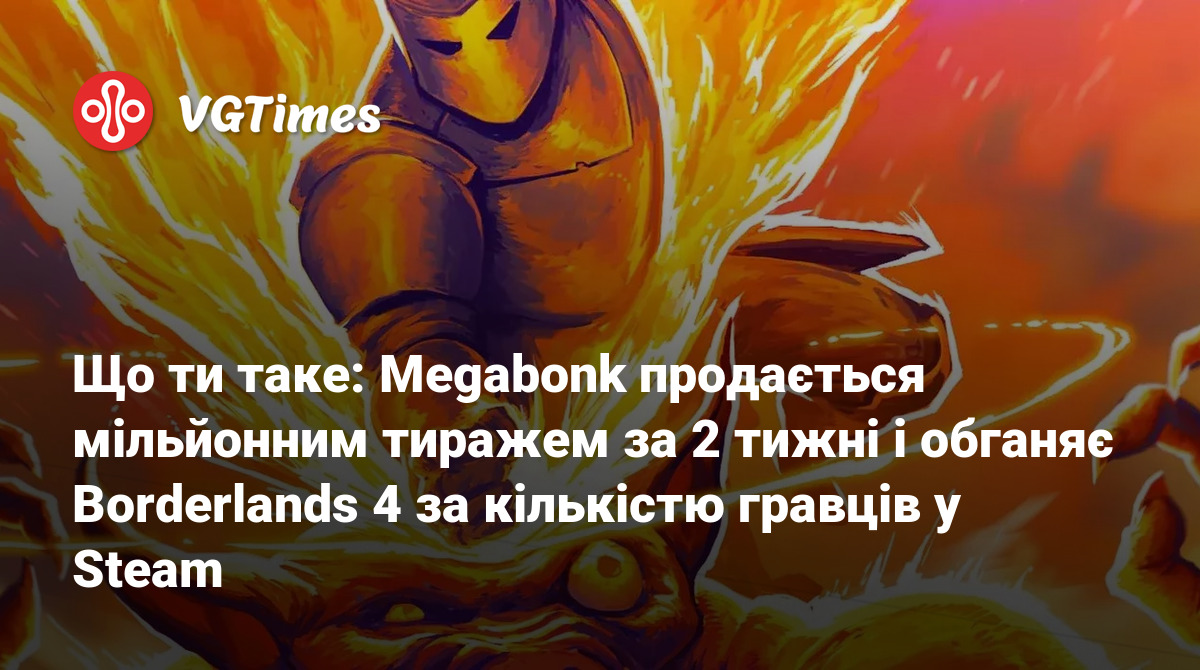 Аркада Megabonk, натхненна Vampire Survivors, всього за два тижні після релізу розійшлася тиражем в мільйон копій і вірвалася в топ найпопулярніших ігор Steam. В піку в проєкті одночасно грали понад 88 тисяч людей, що дозволило йому обігнати такі великі релізи, як Borderlands 4 і Dying Light: The Beast.