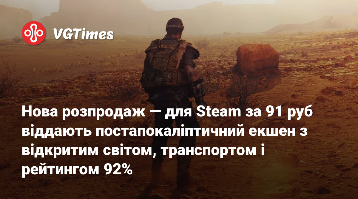 Нова розпродаж — для Steam за 91 руб віддають постапокаліптичний екшен з відкритим світом, транспортом і рейтингом 92%