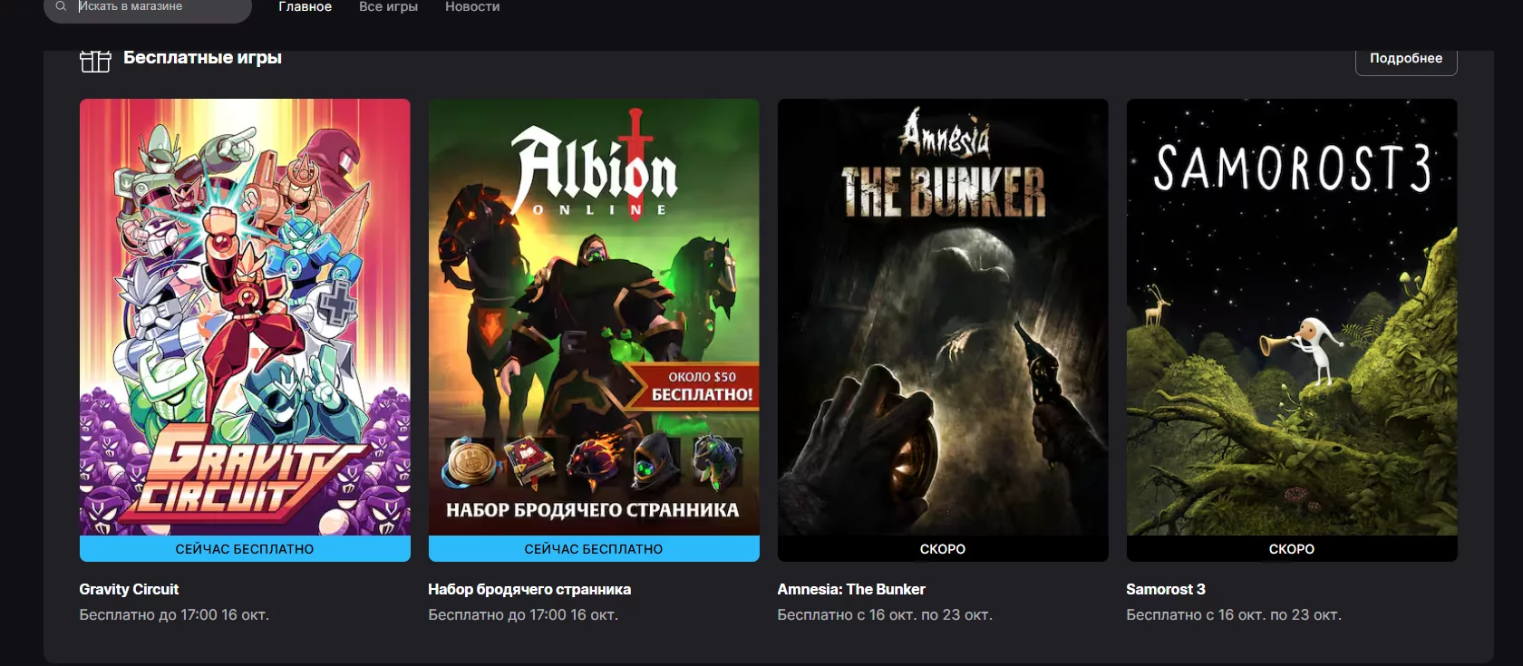 В 2025 році Epic Games Store зробив акцент на іграх чеської студії Amanita Design — розробника атмосферних квестів на кшталт Machinarium та Samorost. За цей рік платформа вже шість разів роздавала проекти студії, а з 16 по 23 жовтня користувачі зможуть безкоштовно забрати Samorost 3. В той же період у магазині буде доступна і Amnesia: The Bunker.