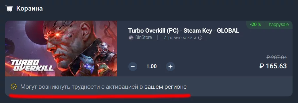 У зв'язку з санкціями багато видавців видалили свої ігри з російського Steam. У такому випадку можуть виникнути проблеми з активацією ключа в цьому регіоні. Відповідний напис буде в описі товару:
