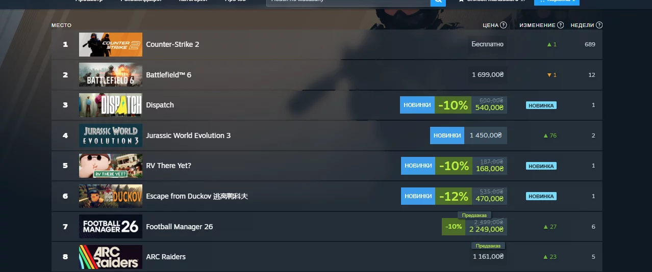 Arc Raiders вийде 30 жовтня на ПК і консолях, і, судячи з реакції спільноти, тест тільки посилив інтерес до проєкту. У топі продажів Steam проєкт знаходиться на 8-му місці, поступаючись хайповій Escape from Duckov і Football Manager 26.