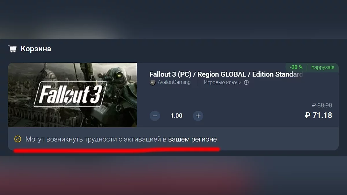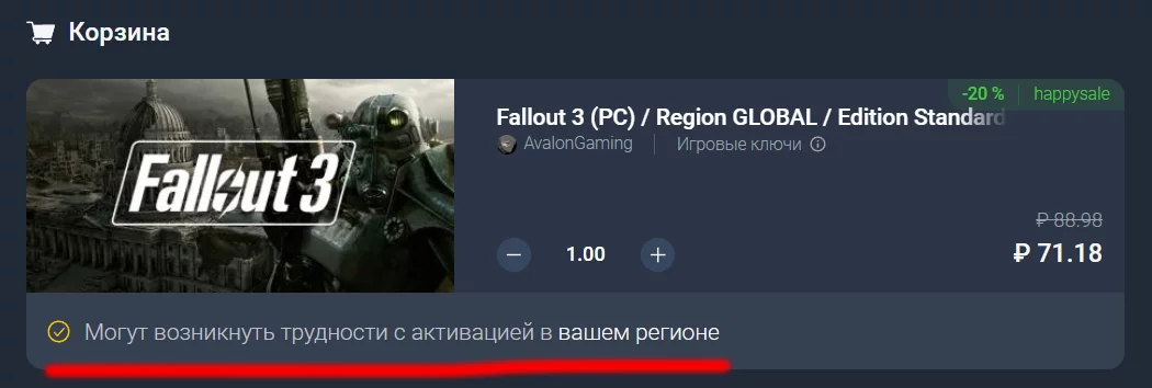 У зв'язку з санкціями багато видавців видалили свої ігри з російського Steam. У такому випадку з активацією ключа в цьому регіоні можуть виникнути проблеми. Відповідний напис буде в описі товару: