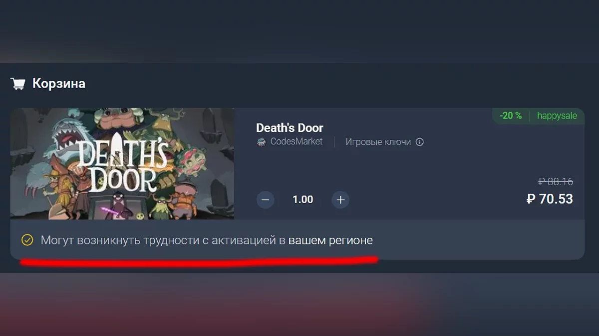 У зв'язку з санкціями багато видавців видалили свої ігри з російського Steam. У такому випадку з активацією ключа в цьому регіоні можуть виникнути проблеми. Відповідний напис буде в описі товару: