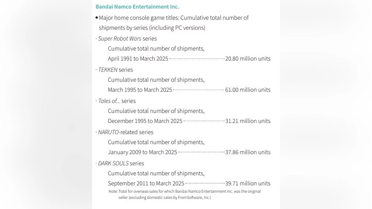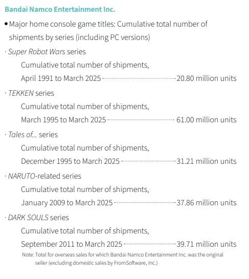 Також у звіті згадана серія Super Robot Wars з загальним тиражем 20,8 мільйона копій.