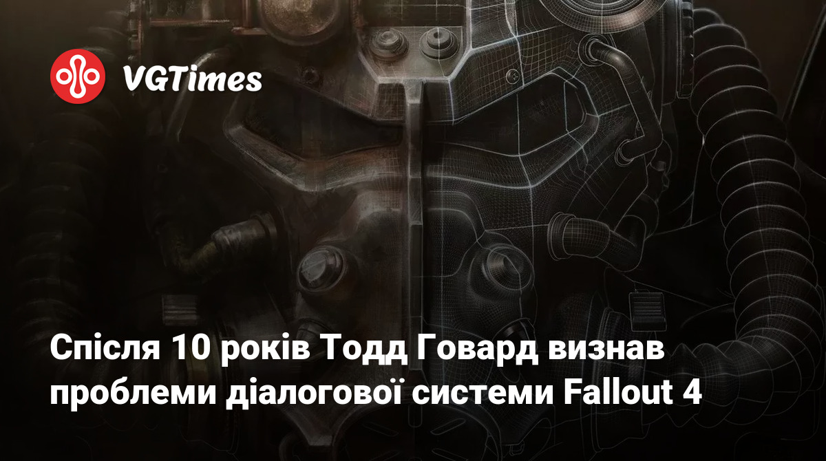В недавньому інтерв'ю GQ керівник Bethesda Тодд Говард (Todd Howard) розповів про проблеми з системою діалогів у Fallout 4, яка святкує своє десятиріччя 10 листопада разом з виходом Anniversary Edition.