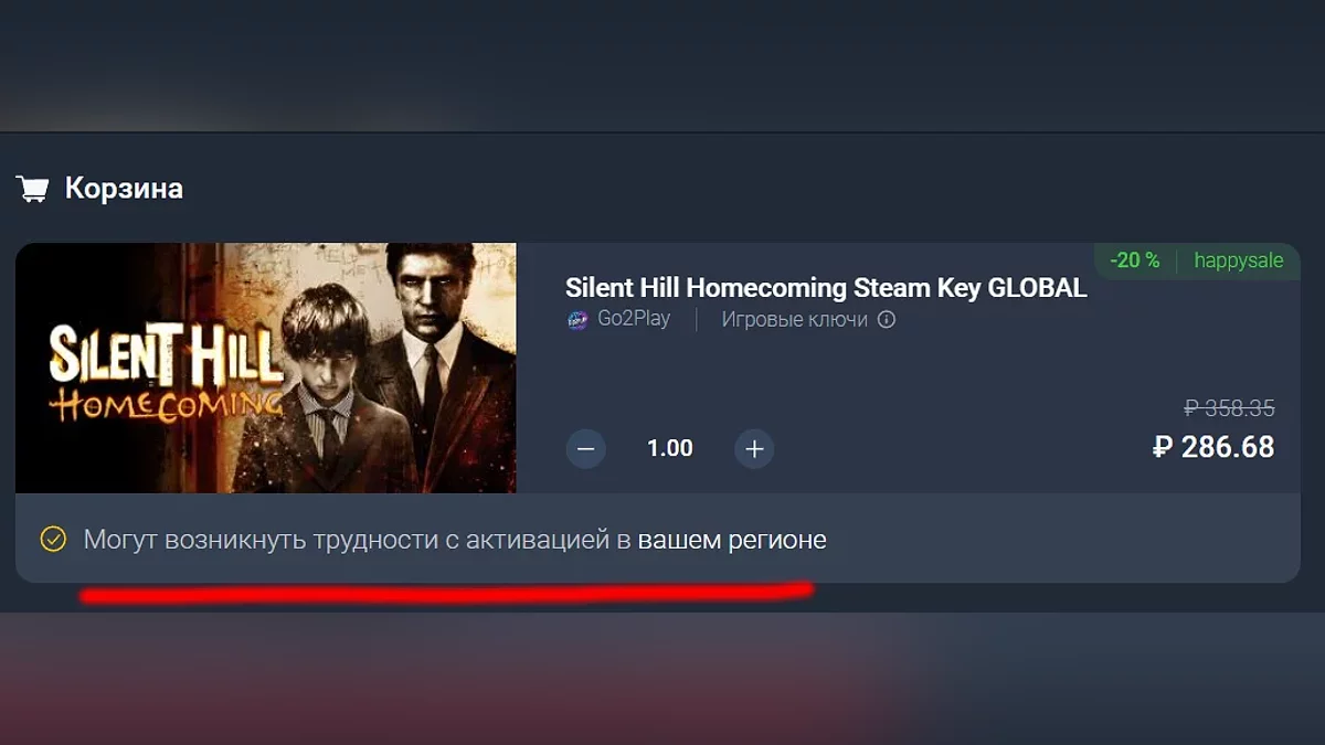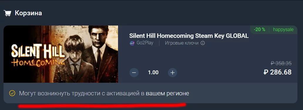 У зв'язку з санкціями багато видавців видалили свої ігри з російського Steam. У такому випадку з активацією ключа в цьому регіоні можуть виникнути проблеми. Відповідний напис буде в описі товару:
