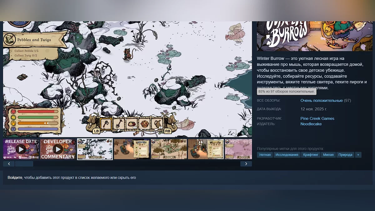 85% позитивних відгуків — вийшов милий виживець Winter Burrow про мишеня та його притулок