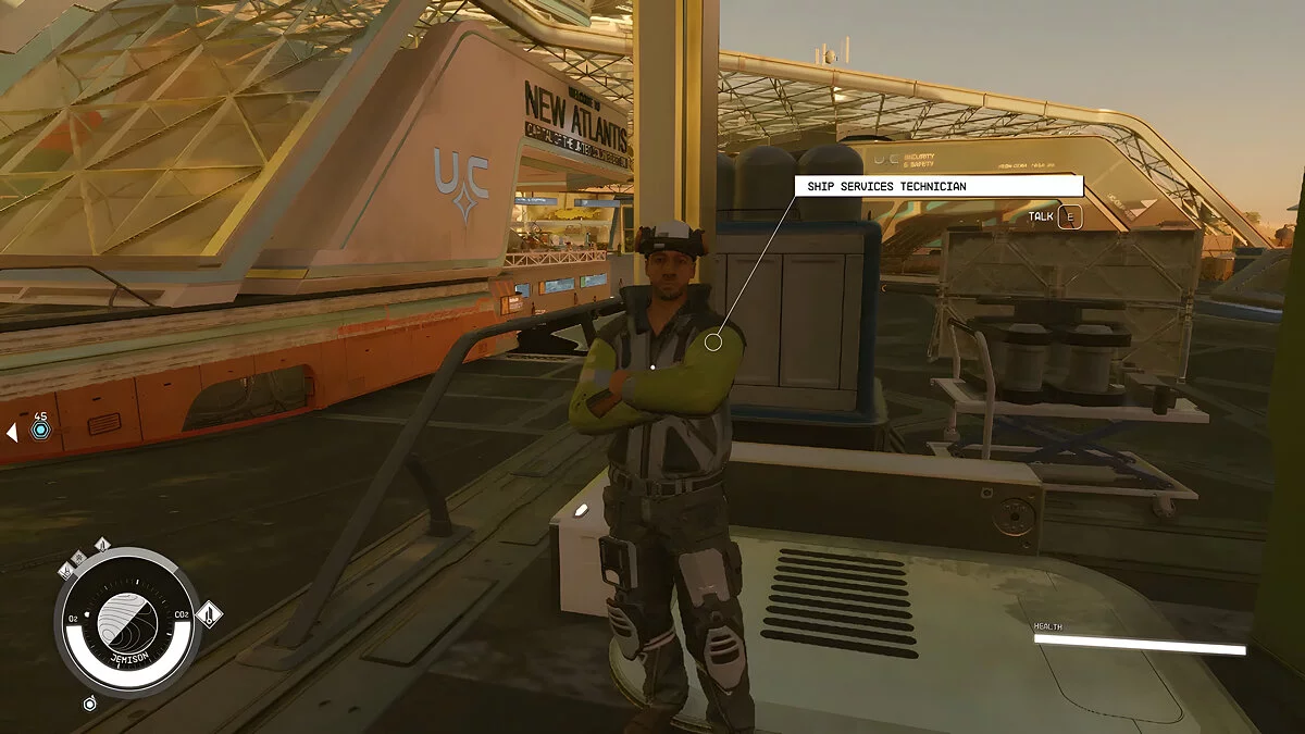 Именно этот персонаж буквально подарит вам своё судно «Фронтир» (Frontier) и порекомендует лететь в штаб-квартиру «Созвездия» в Новой Атлантиде (New Atlantis). С этого момента вам будет доступно первое судно — останется лишь подняться на борт и запустить двигатели. В космосе, конечно, предстоит завершить несколько обучающих миссий, после чего игроки вольны отправиться на своём корабле куда угодно.