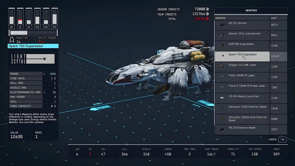 Цена на корабли варьируется от 70 000 до 300 000 кредитов — так что перед обновлением судна придётся накопить достаточное количество денег. Сразу после покупки вам нужно сделать корабль основным. Для этого снова побеседуйте с техником.