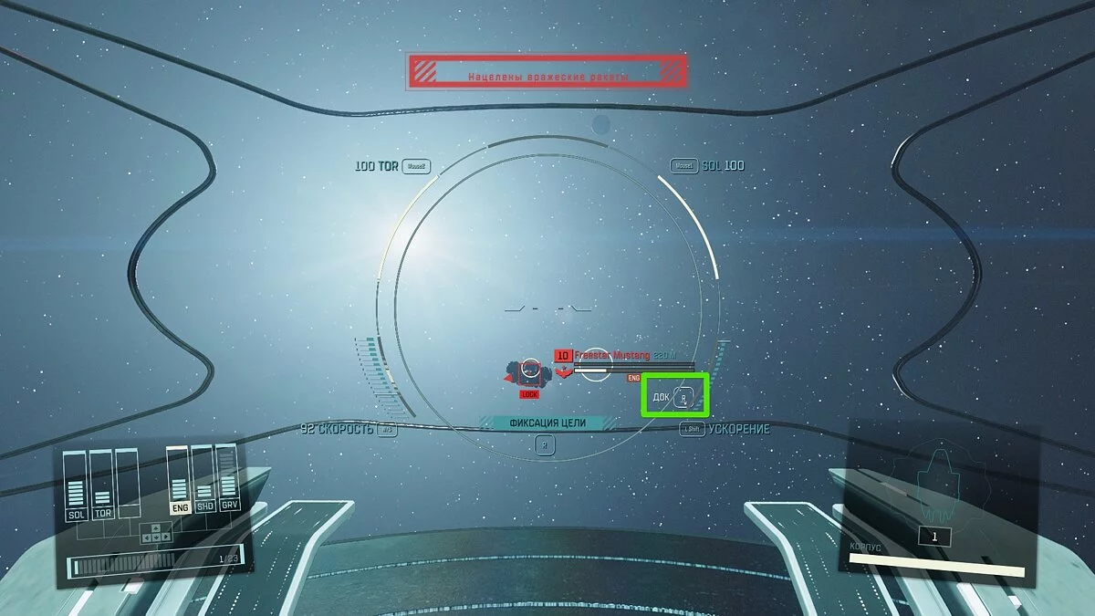 Помимо обычного «угона» корабля, вы также можете взять любое судно на абордаж прямо в открытом космосе. Но для этого придётся выполнить обязательное условие, а именно — вывести из строя двигатели звездолёта. Когда корабль будет обездвижен, при сближении с ним появится кнопка «ДОК». Только после этого вы сможете подняться на борт вражеского судна.