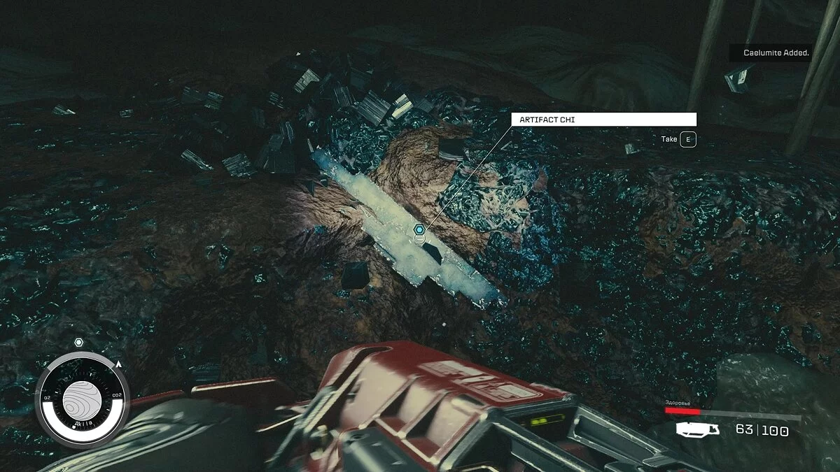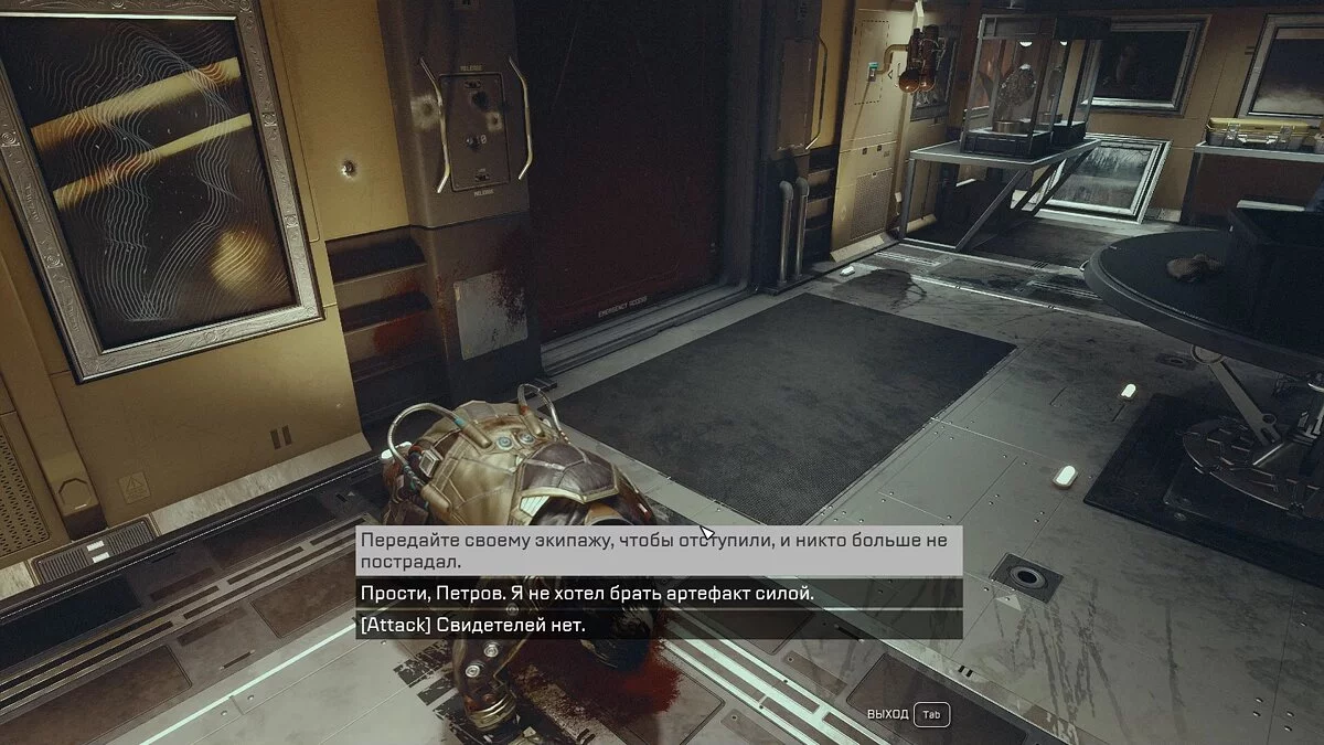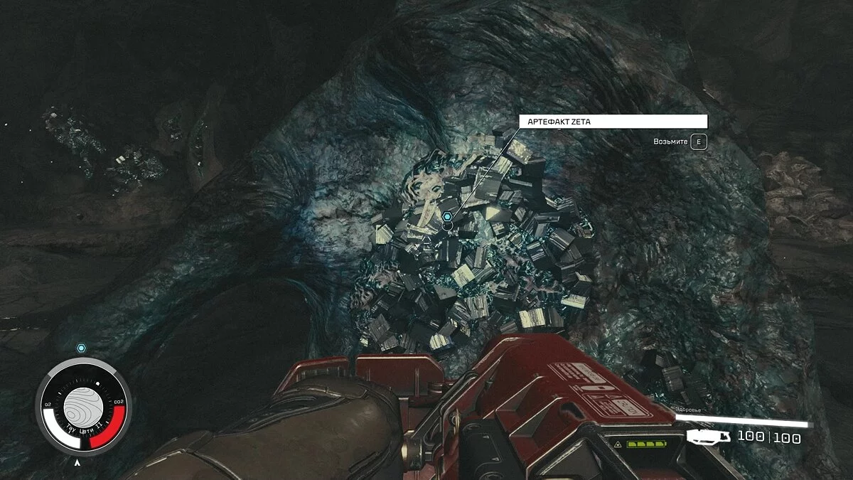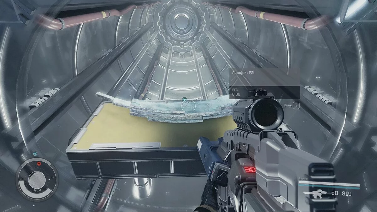 Внутри разберитесь со всеми врагами и пробейтесь к артефакту. Как обычно, перед квестовым предметом появится охотник. Ликвидируйте его и возвращайтесь на корабль.