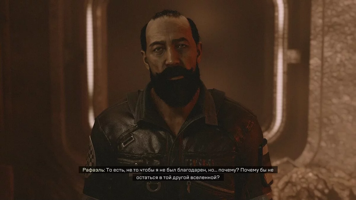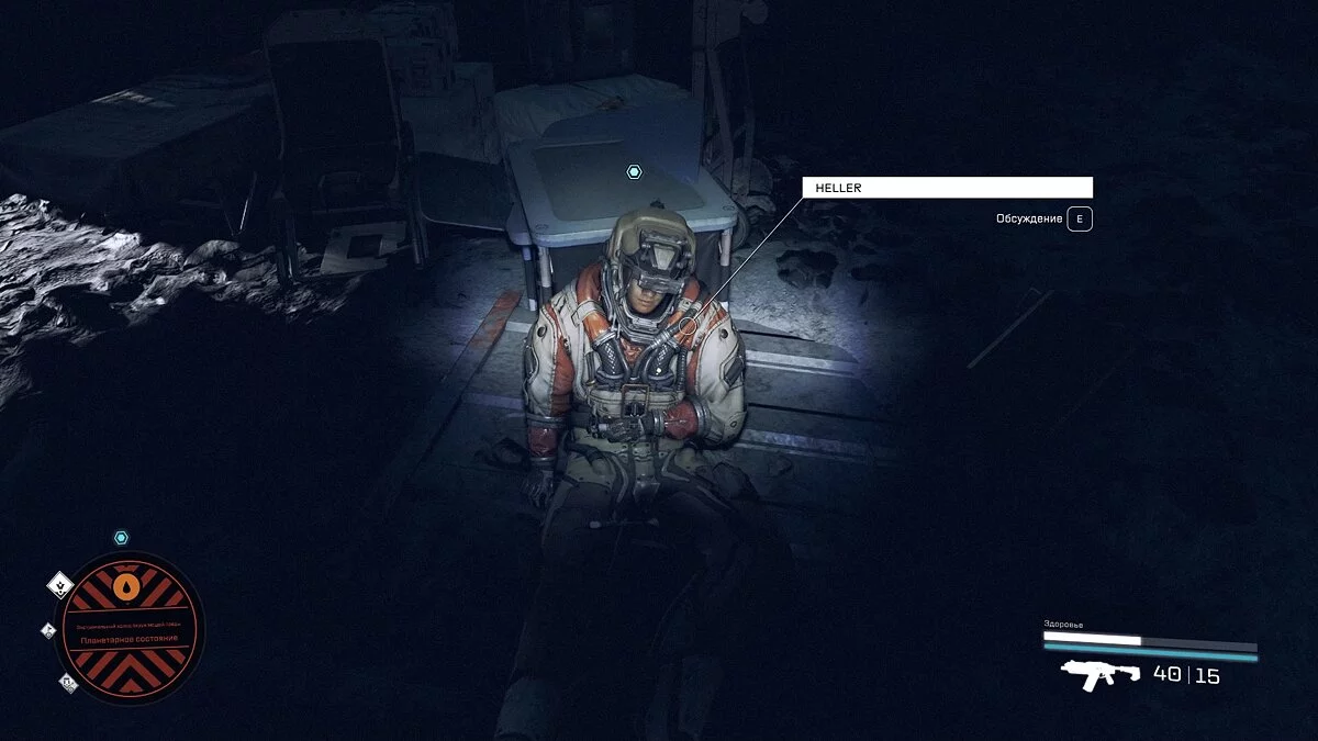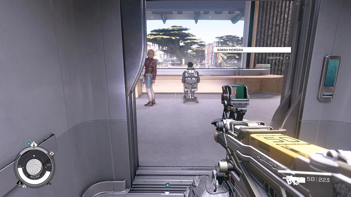 Выслушайте Охотника и Эмиссара, после чего сможете расспросить их подробнее (опционально). Сделав это, выйдите в открытый космос и вернитесь на базу «Созвездия».