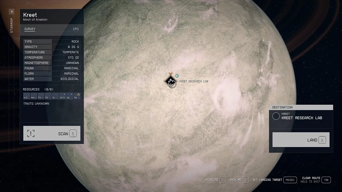Когда они будут уничтожены, стоит подлететь на достаточно близкое расстояние, навестись на обломки и нажать клавишу «E». Так вы сможете осмотреть содержимое и забрать его себе. Перейдите в меню карты (клавиша «M»), выберите планету Крит (Kreet), затем используйте быстрое перемещение. Чтобы приземлиться, снова откройте карту и выберите зону для посадки. Зажмите «X».