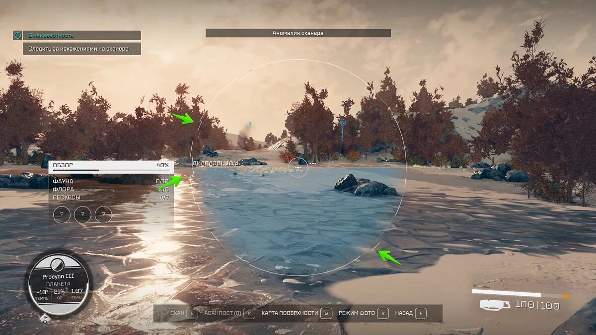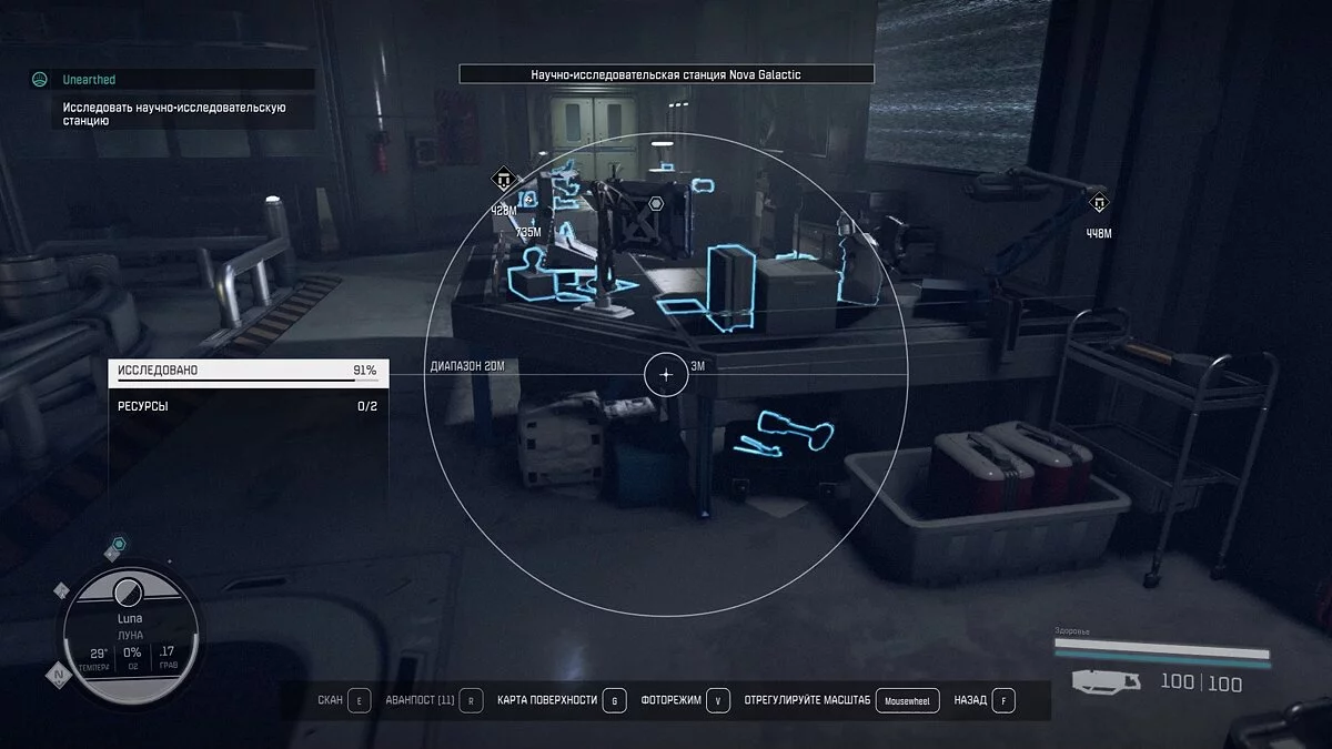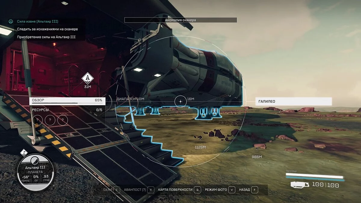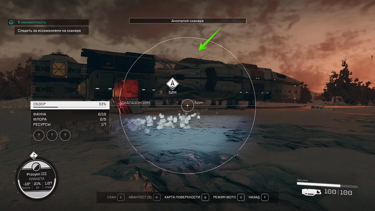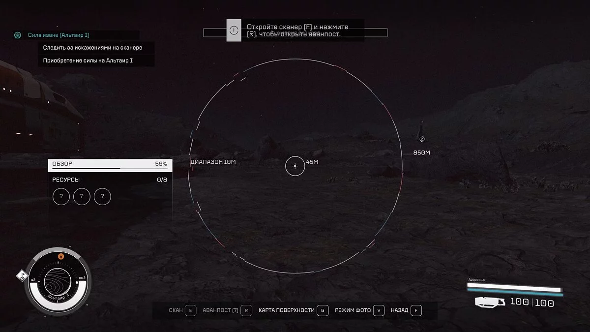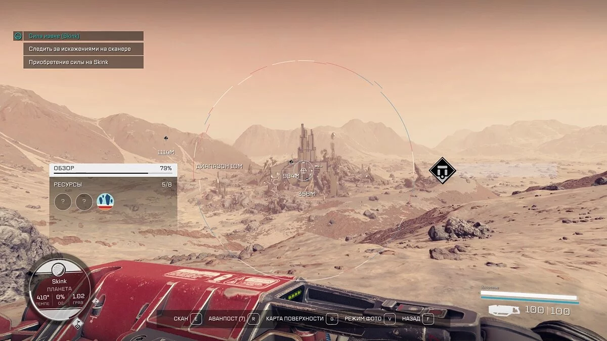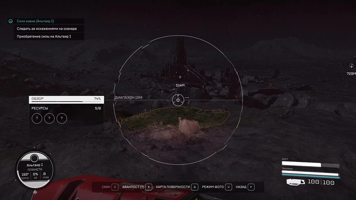 Приземляться на неё не стоит — нужно подлететь вплотную к спутнику, курсирующему неподалёку, и активировать его. Направьте курсор на выделенную область, затем нажмите «E». Теперь зажмите клавишу «R» для активации.