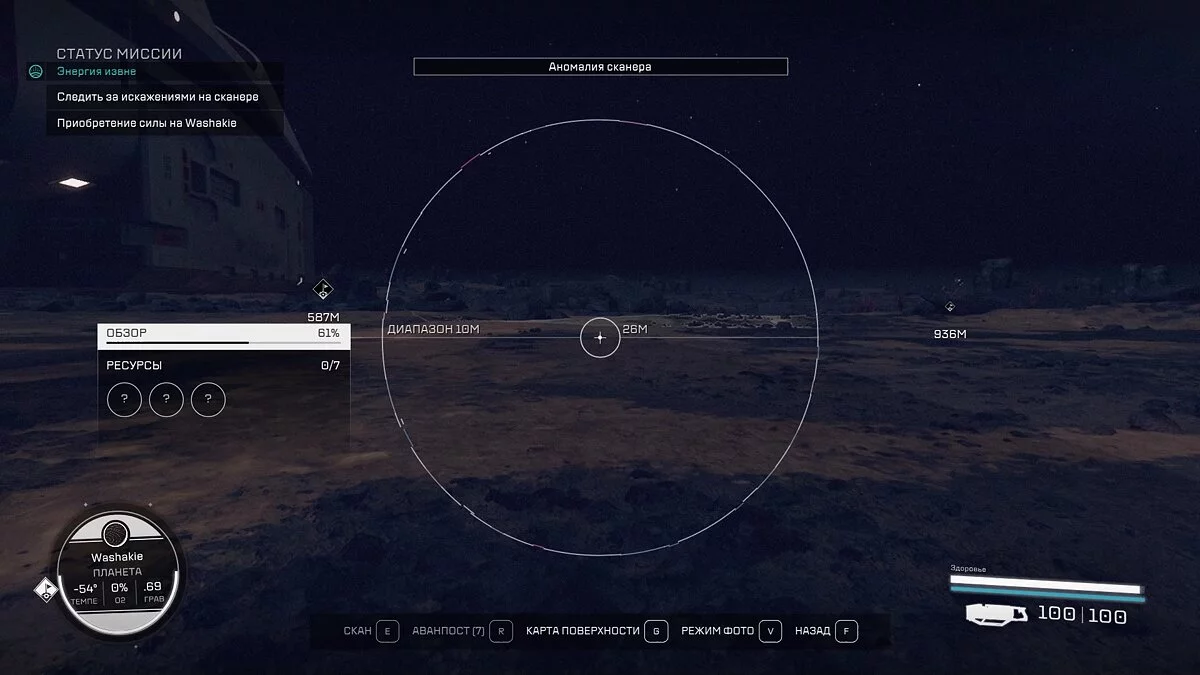 На карте будет отображаться локация, где находится храм, однако конкретная точка не указана. После приземления откройте сканер на кнопку «F» и вращайте камеру. Вы увидите изменения интерфейса (глитчи). Зафиксируйте направление и следуйте в эту сторону. Оказавшись неподалёку от храма, появится маркер синего цвета.