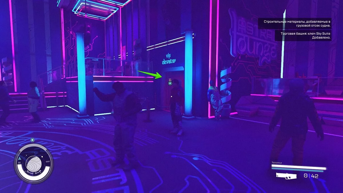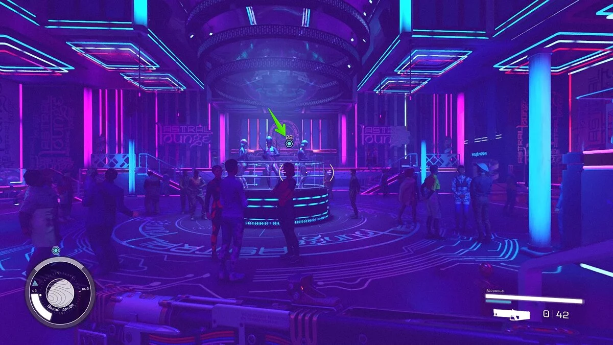 Чтобы попасть в подземную часть города, переместитесь в космопорт и бегите к центральной площади. Слева в тупике есть лифт — садитесь в него и бегите за маркером.