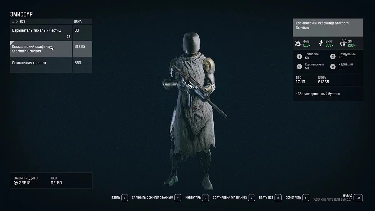 - Космический скафандр Starborn Gravitas (61 265 кредитов).