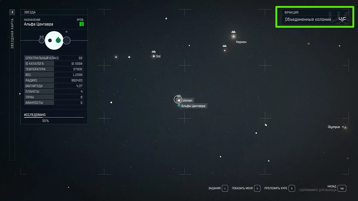 Чтобы начать цепочку заданий, связанных с этой фракцией, необходимо добраться до системы «Альфа Центавра» или переместиться в любую другую подконтрольную «Объединенным колониям» систему. Принадлежность фракции можно отследить в правом верхнем углу, если навести курсор на ту или иную звездную систему.