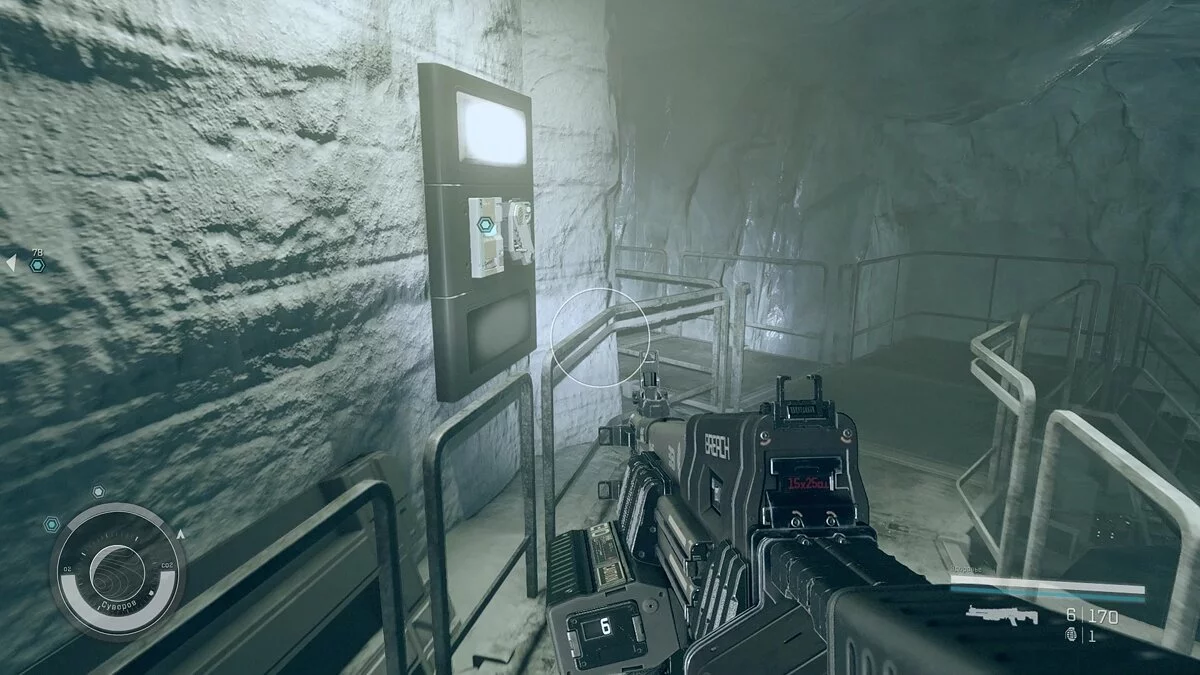 Далее нужно придерживаться советам, описанным выше: используйте стелс, не попадайтесь и не убивайте людей. Для этого на локации есть всё необходимое — укрытия и вентиляционные проходы. К слову, электромагнитную пушку с неплохим уроном вы найдёте здесь же.