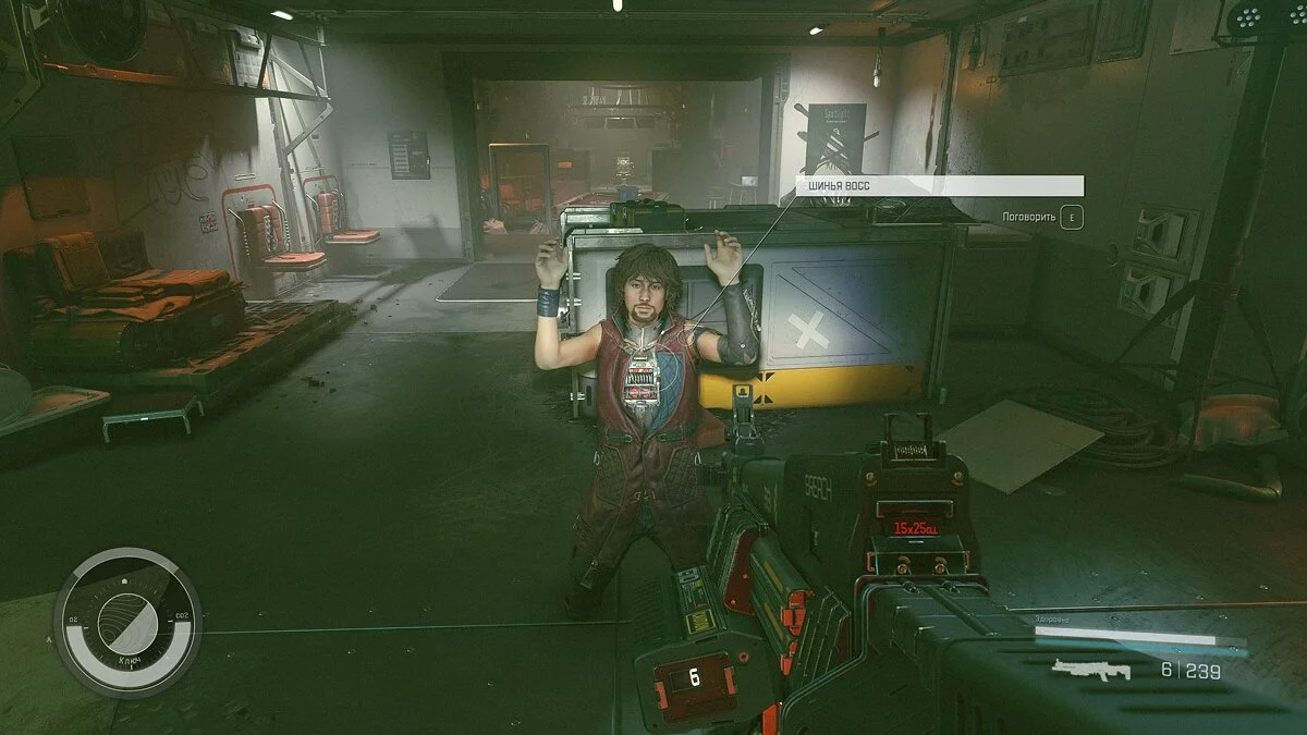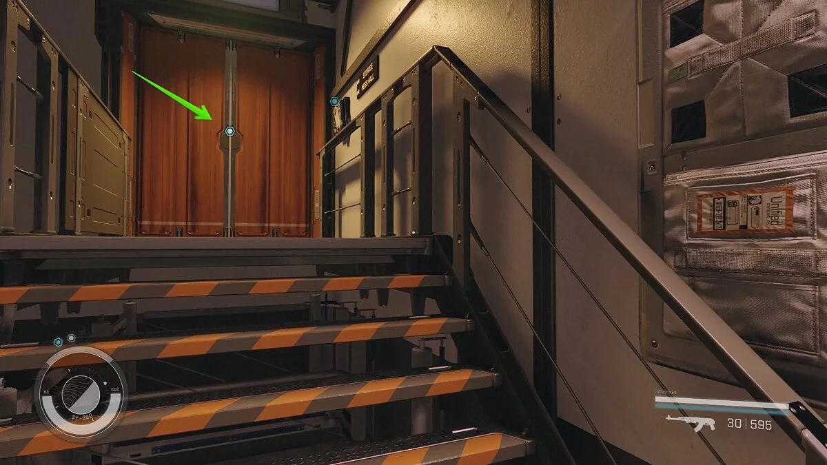 Получите новое задание от Наевы и следуйте на Джемисон. В «Колодце» отыщите капитана Хуан и выслушайте её. Вернитесь в космопорт — здесь приземлится её корабль. Войдите внутрь и ждите, пока судно причалит к SY-920.