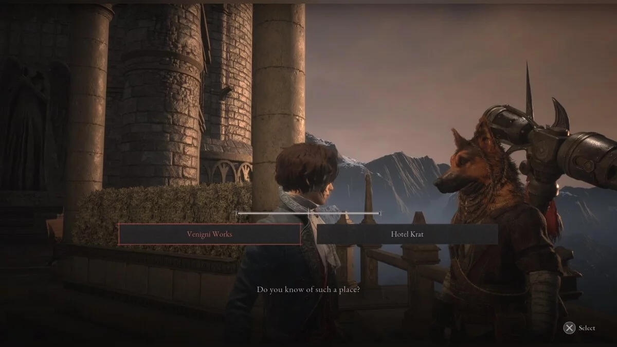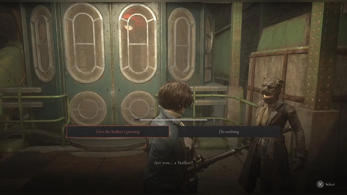 Зачистив фабрику Вениньи, вы отправитесь к собору Святого Франжелико. Довольно скоро вы доберетесь до железного подъемника, который защищает охотница с маской пса. Она спросит, является ли Пи гвардейцом: