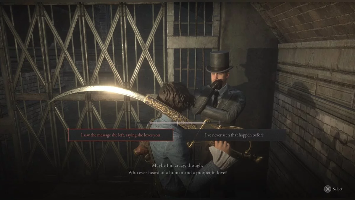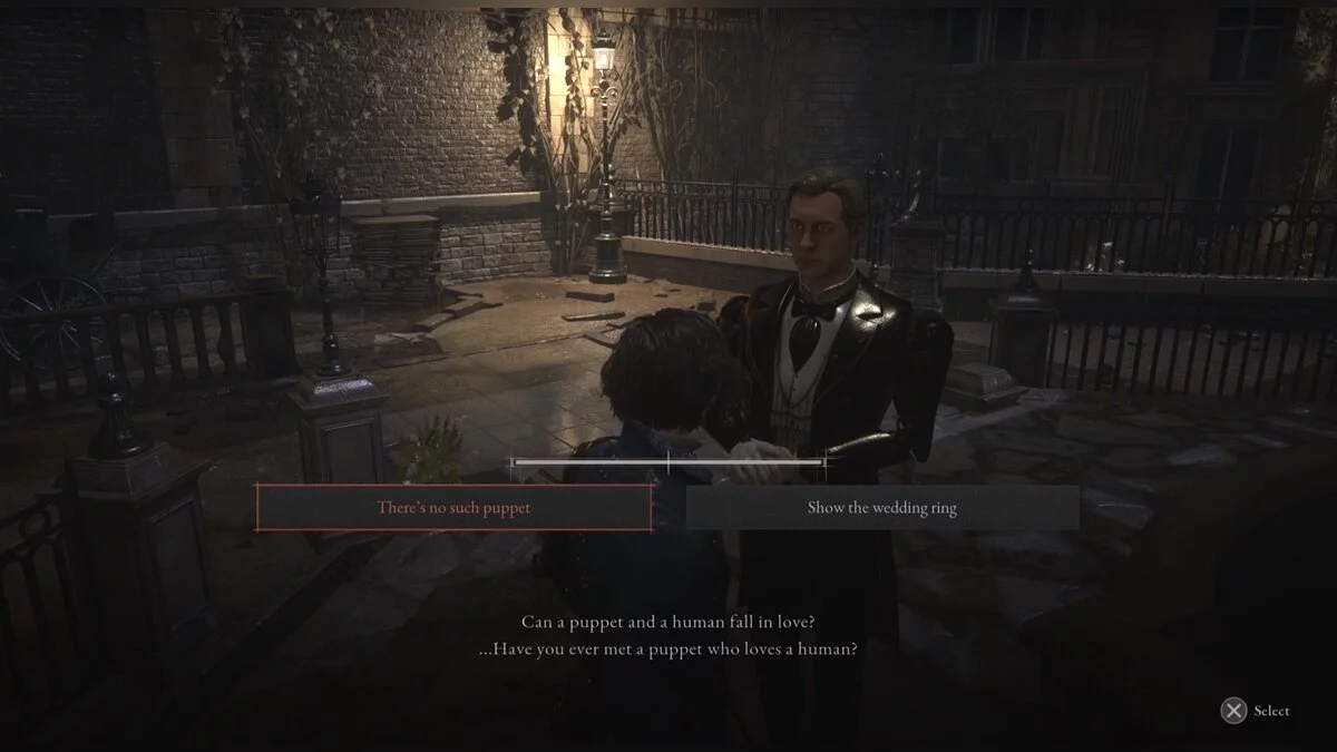 От звездочета идите направо и поговорите с мужчиной в цилиндре. Это джентльмен Джулиан, который просит вернуть вещи покойной жены. Двигайтесь по трубам, пока выйдете в город. В какой-то момент вы окажетесь в зоне с марионетками-трубочистами. Поднимитесь по лестнице, перейдите мост, а затем спуститесь. У стены будет труп женщины, одетой в черное платье. Как только вы окажетесь достаточно близко, на нее укажет Джемени.