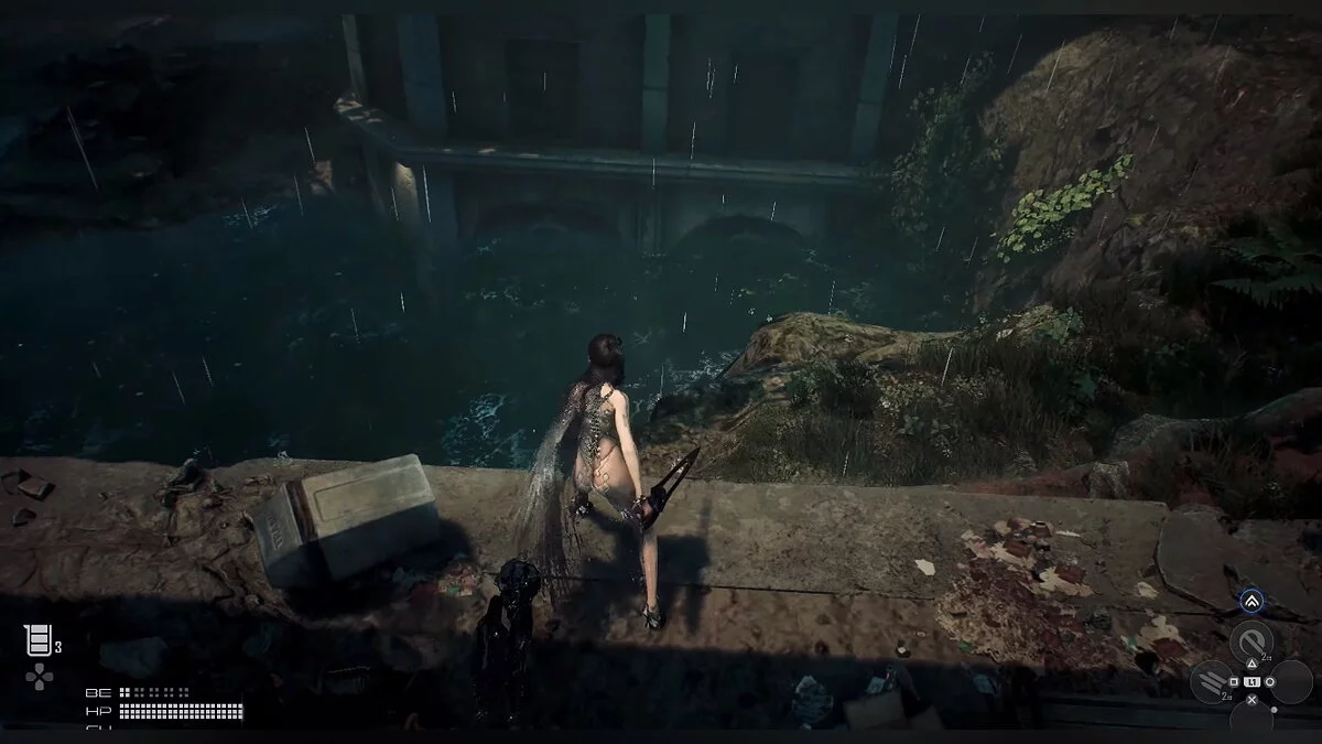 Обратите внимание, что у вас появилось новое умение. Активировать его можно сочетанием кнопок L1+треугольник. В водоёме справа находится сундук с материалами. Они пригодятся вам в будущем.