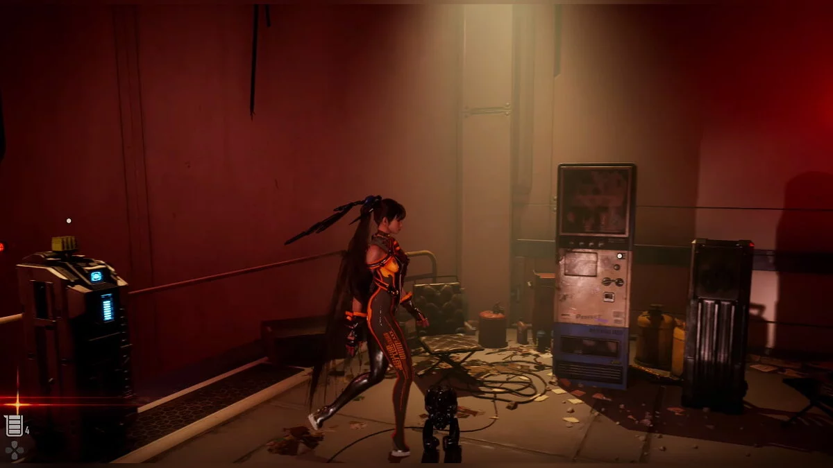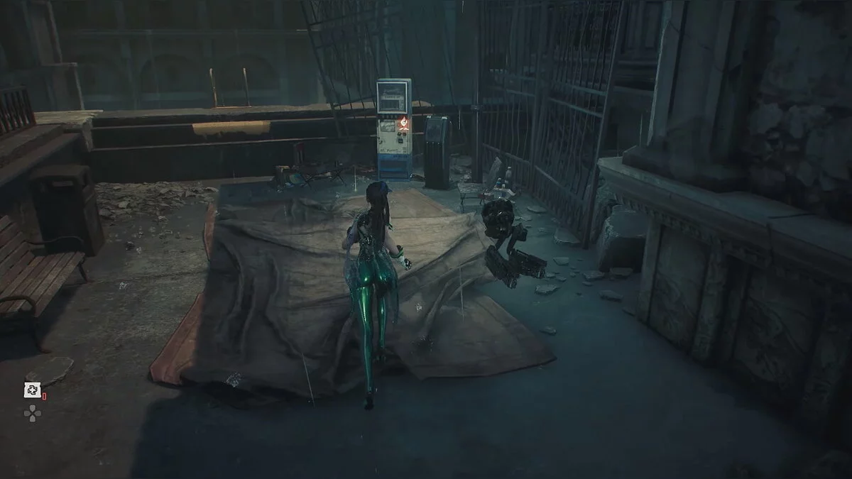Слева от вас находится телефонный аппарат. В мире Stellar Blade они используются для быстрого перемещения.