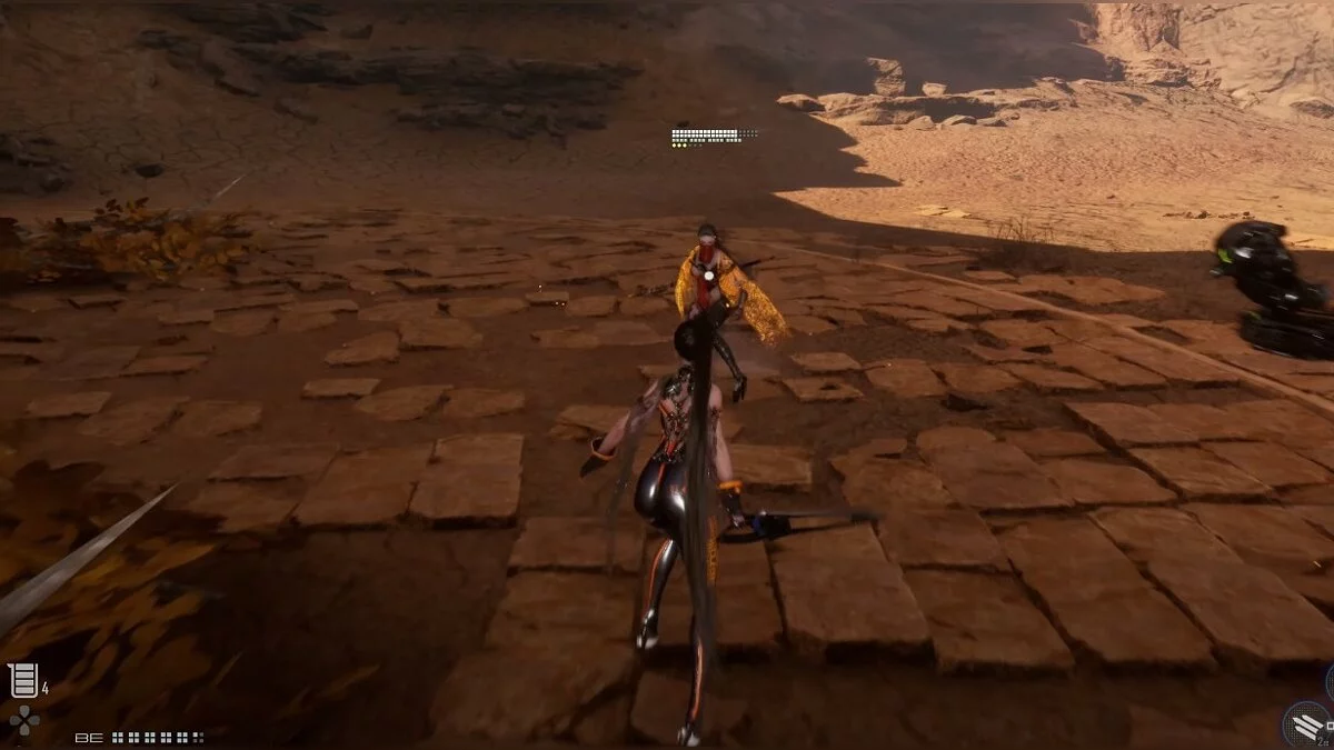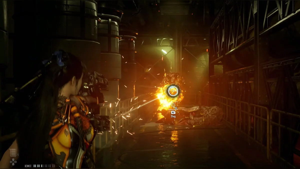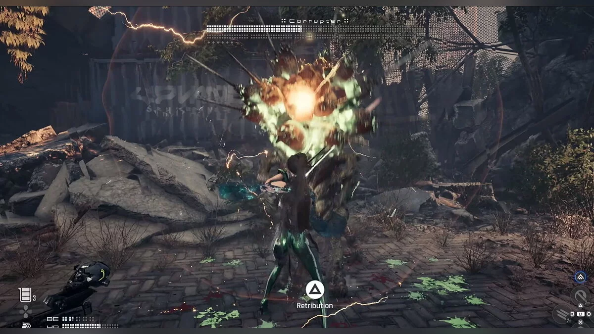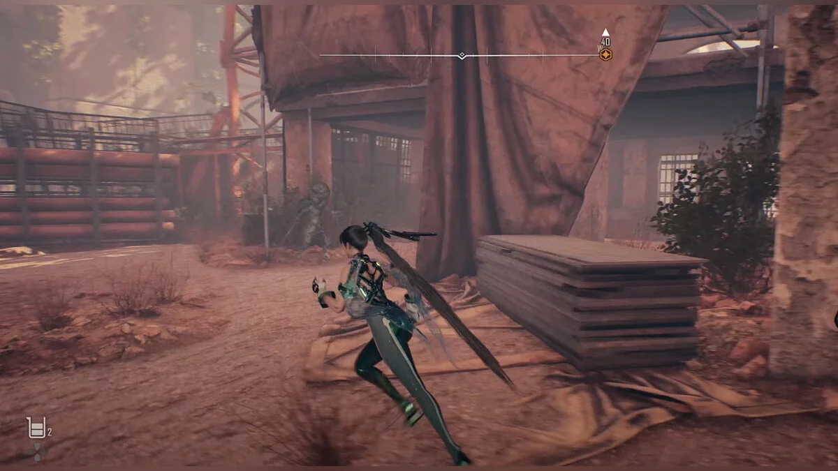 После вступительного ролика нажимайте кнопку R2 несколько раз, чтобы открыть люк. Затем коснитесь клавиши R2 снова, чтобы взять Тахи за руку. Преследуйте девушки вступайте в бой с пришельцами. «Квадрат» на Dualsence отвечает за лёгкую атаку, а «треугольник» — за сильный удар. Для блокирования вражеских ударов используйте кнопку L1. Если вы нажмёте эту клавишу за мгновение до атаки противника, то у вас получится совершить парирование. После победы над инопланетянами продолжайте бежать за Тахи. Перепрыгивайте через упавший столб и одолейте очередную группу монстров. При помощи нажатия на правый стик (R3) вы можете выбрать текущую цель. Перед ударом пришельцы слегка задирают лапу назад. В этот момент стоит нажать блок (L1), чтобы отразить атаку и нанести контрудар. Сочетание клавиш L1+квадрат позволит применить особо мощное бета-умение. Он расходует бета-энергию, которая накапливается за счёт попаданий по врагам и парированиям.