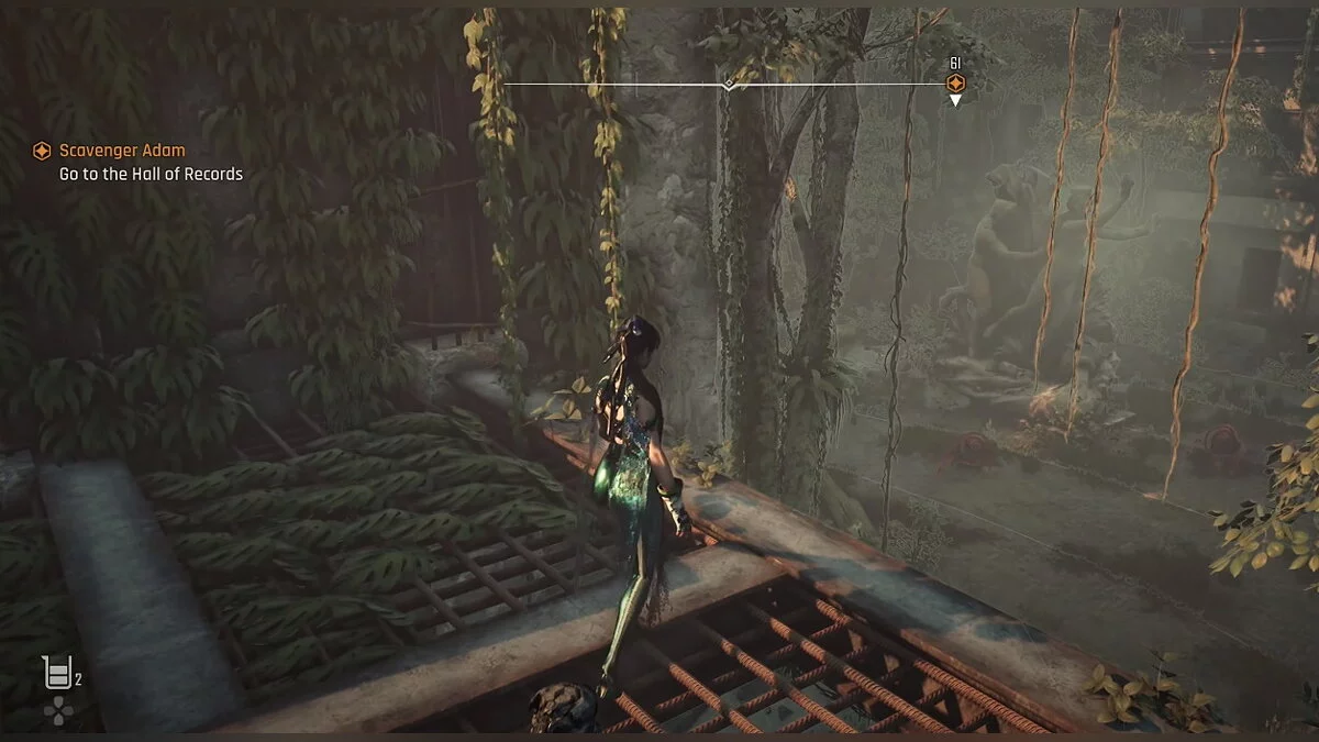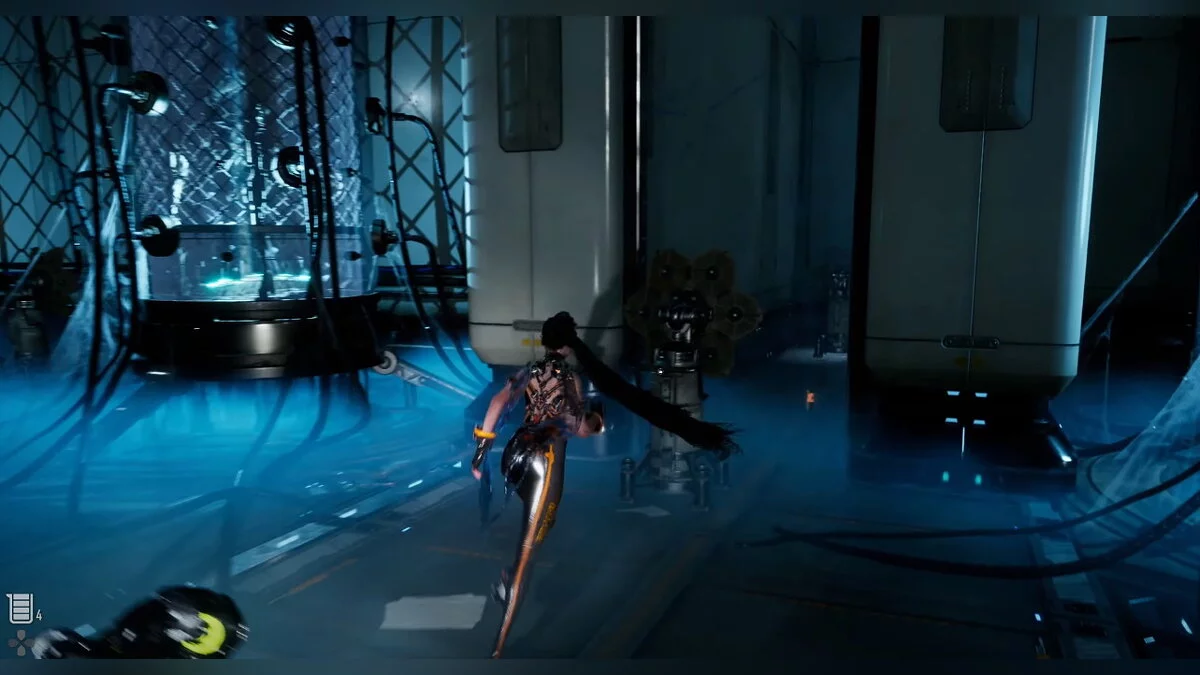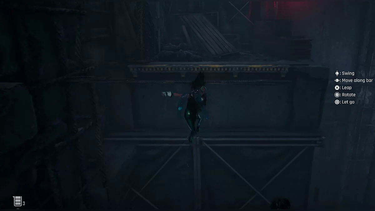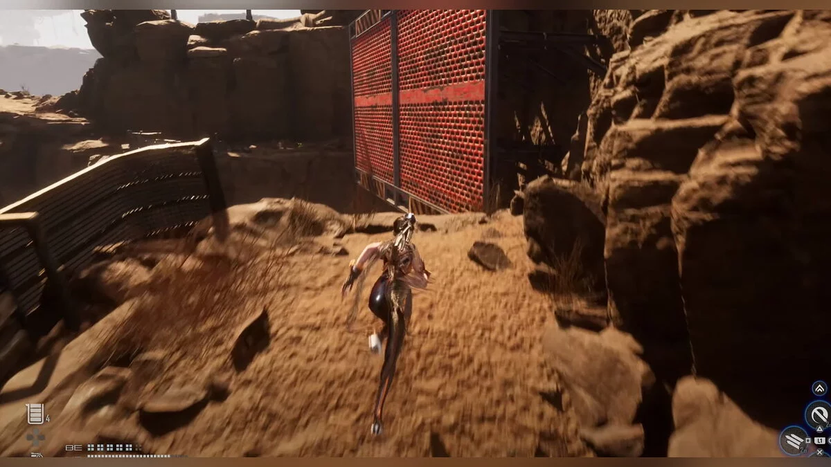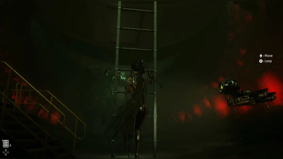 Когда вы окажетесь рядом с красной решёткой, вам предложат новую механику бега по стенам. Её суть такая же, как в Prince of Persia: The Sands of Time или Star Wars Jedi: Survivor. Прыгайте по направлению к вертикальной поверхности, зажимайте X, чтобы бежать по ней, а затем снова совершайте прыжок.